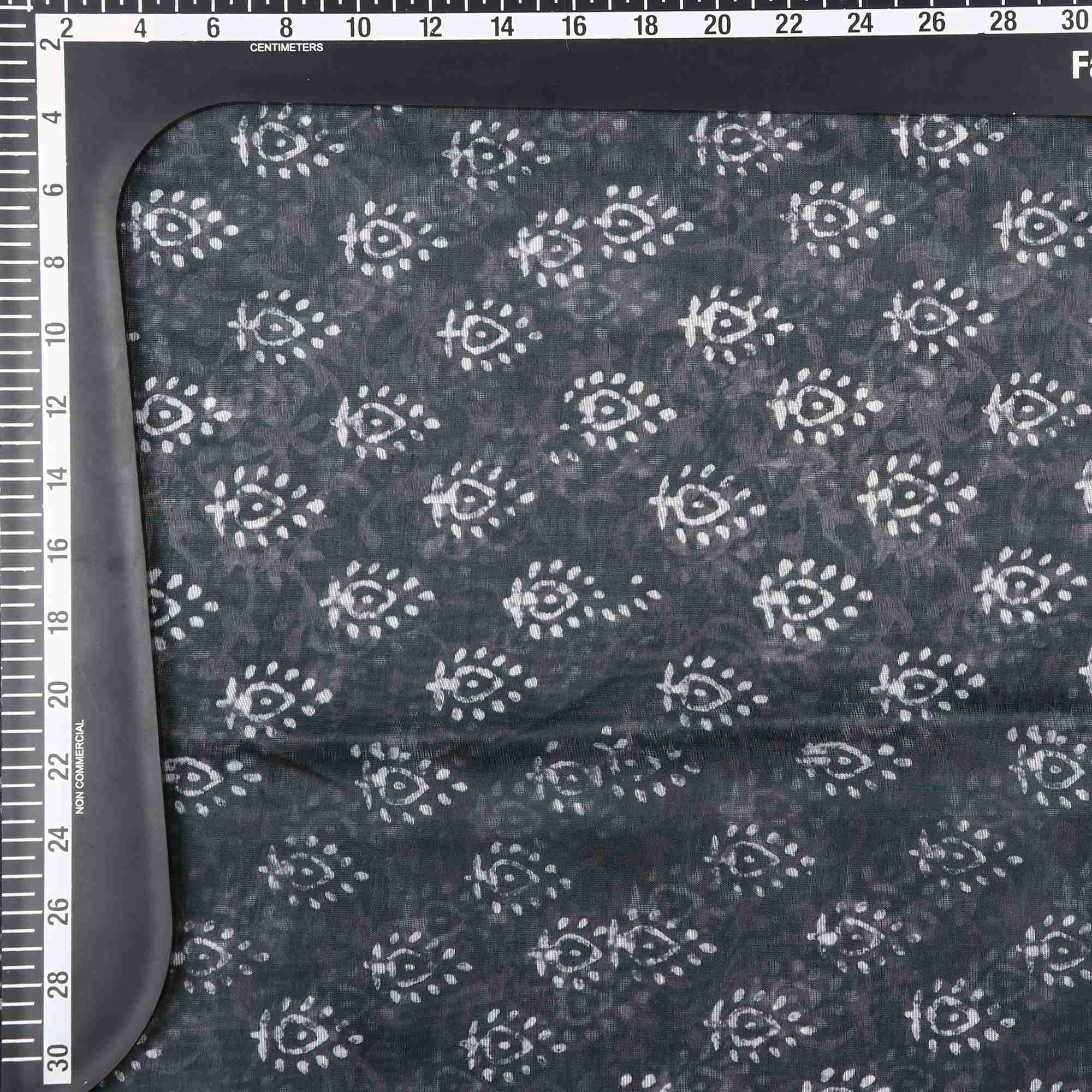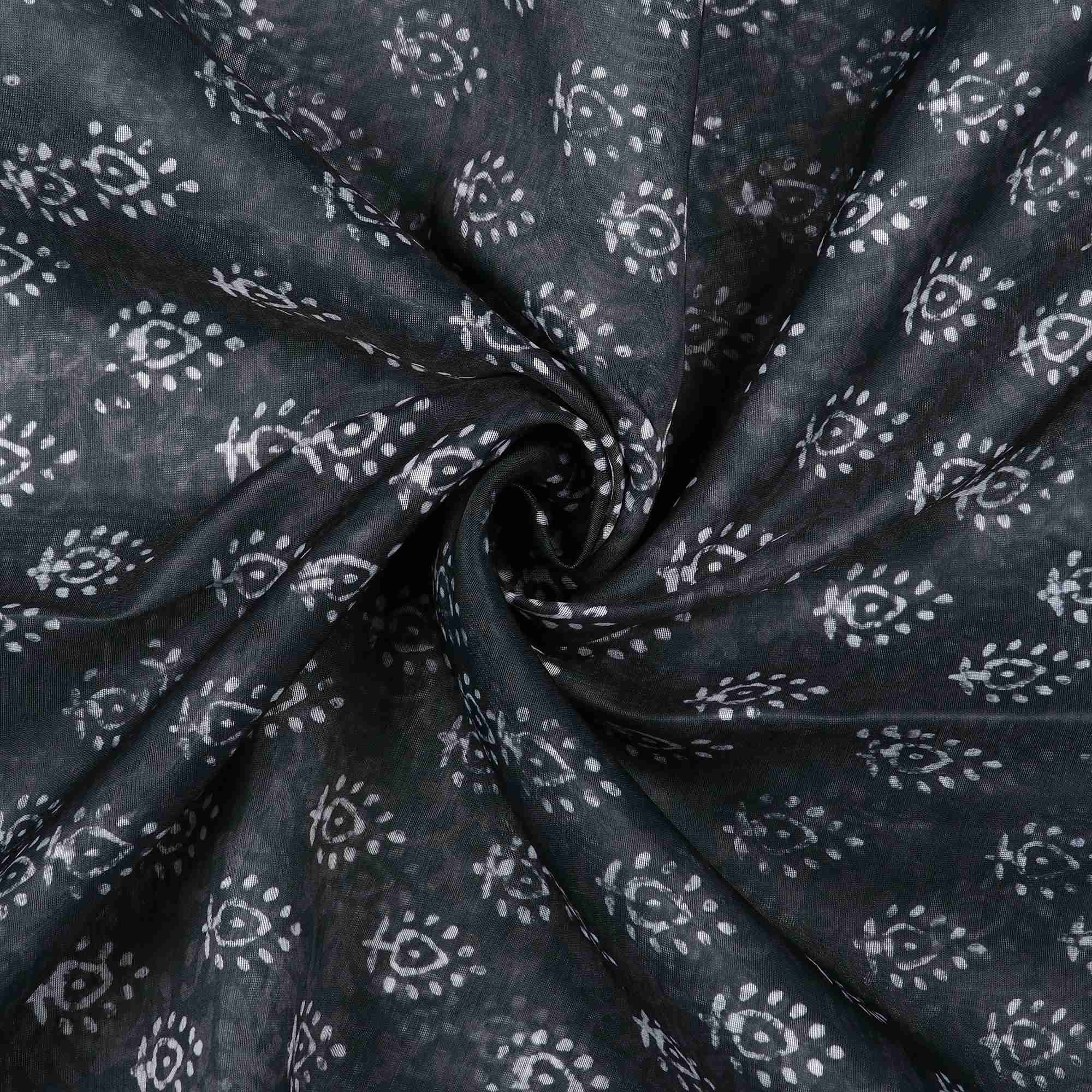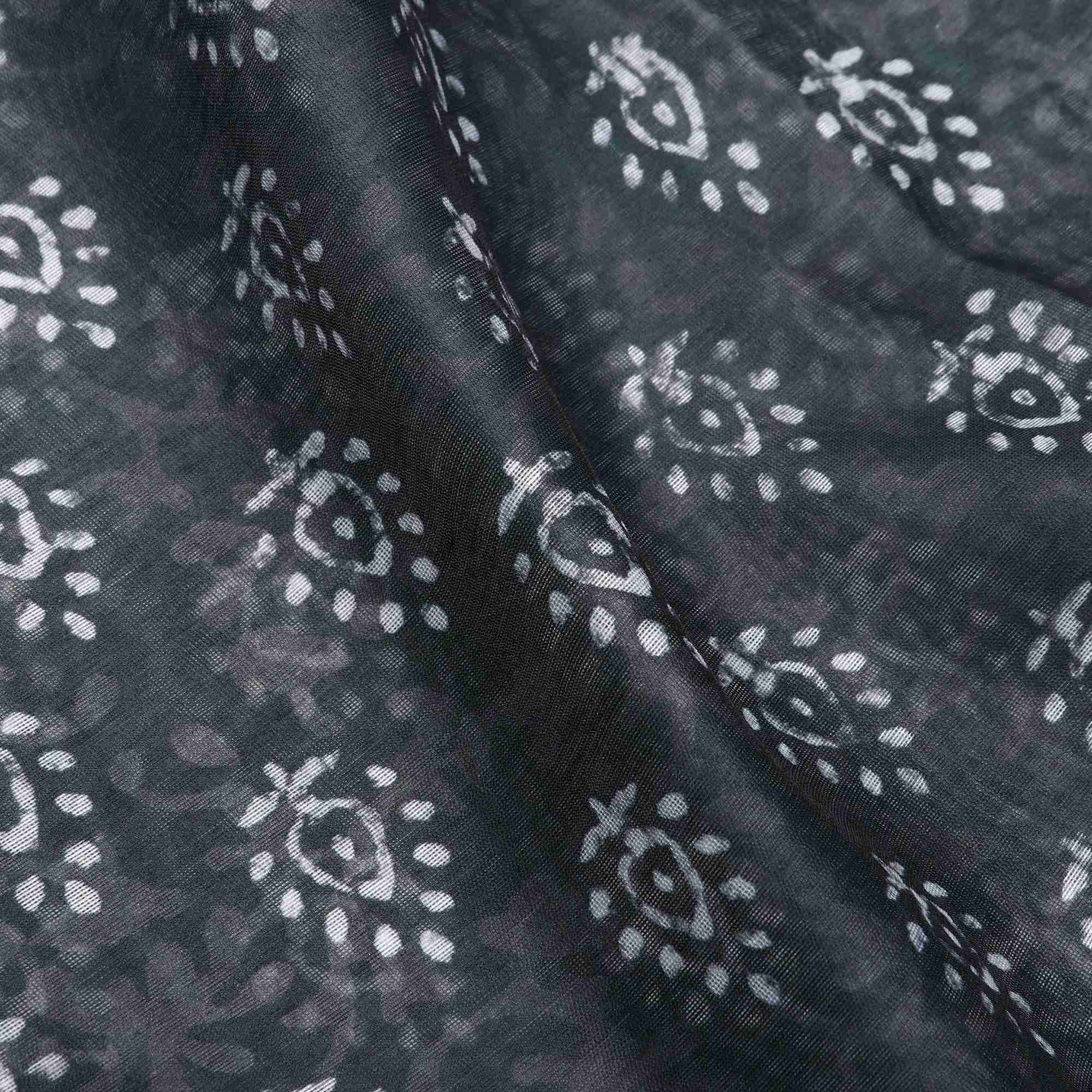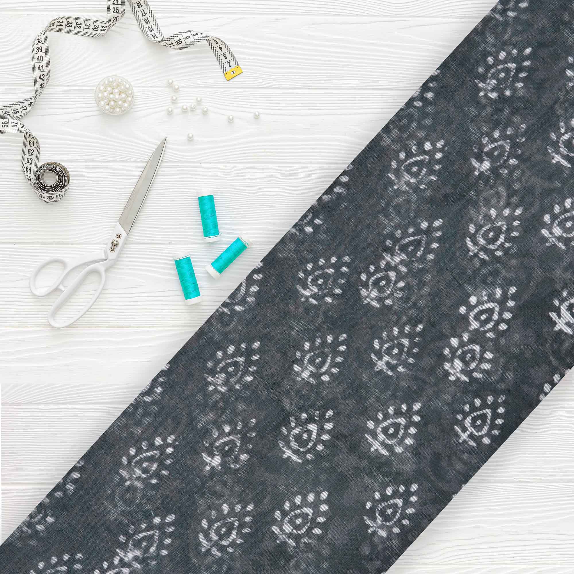 Dark Grey And White Object Pattern Digital Print Chanderi Fabric