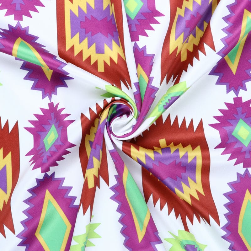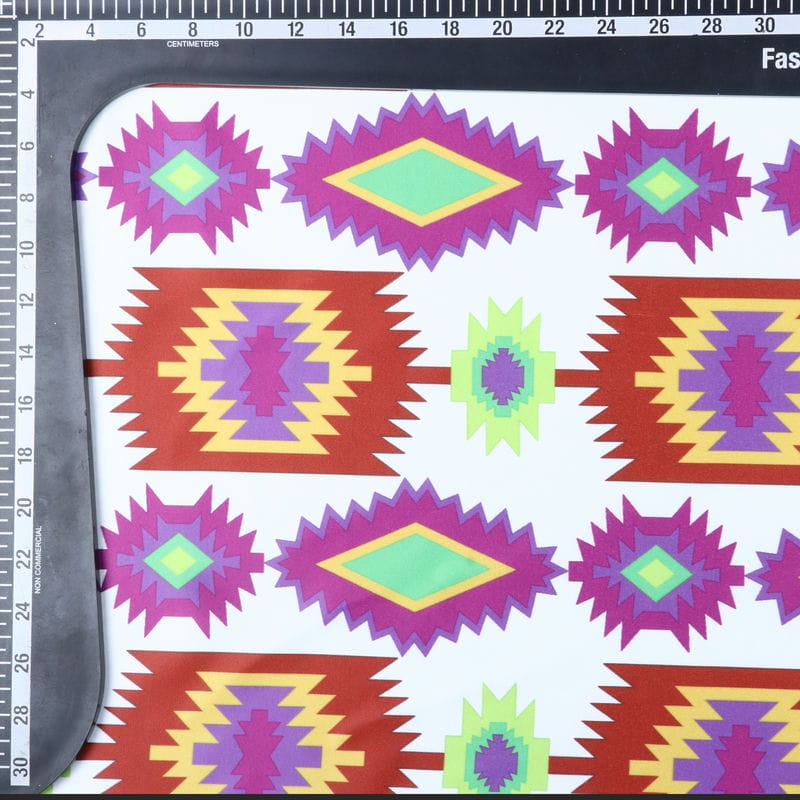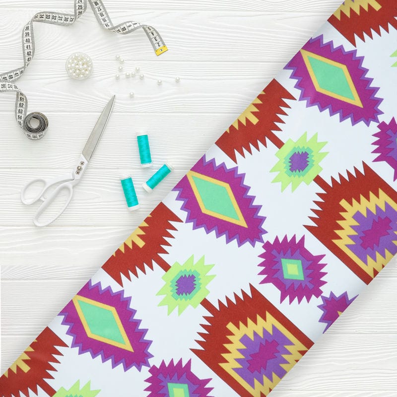 Dark Red And Pink Geometric Pattern Digital Print Silk Satin Fabric