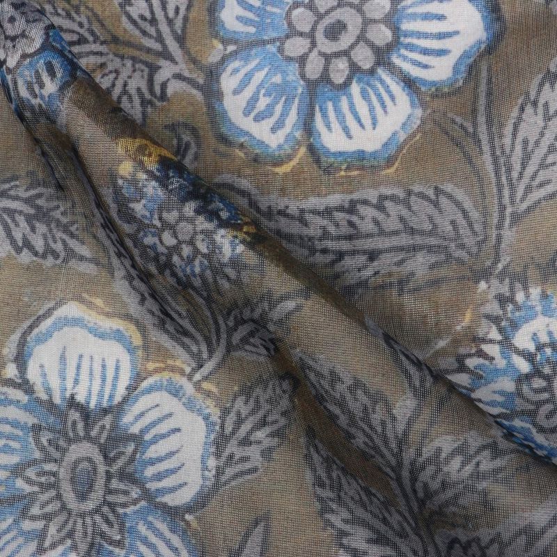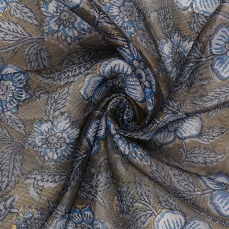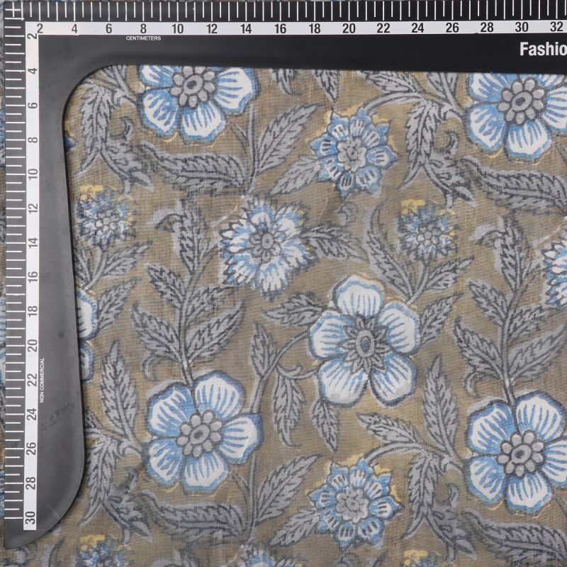 Dark Yellow And White Floral Pattern Digital Print Chanderi Fabric