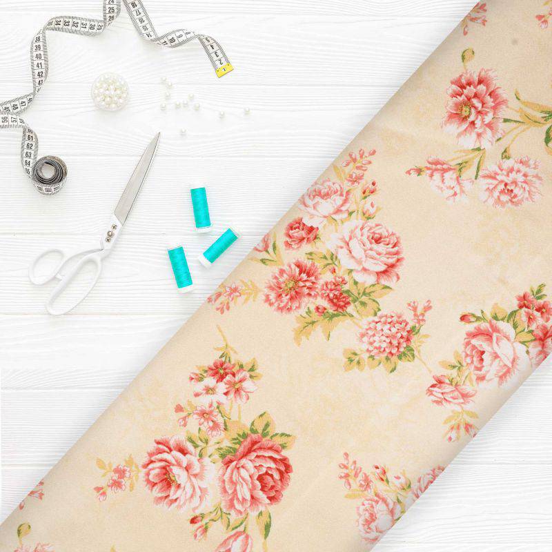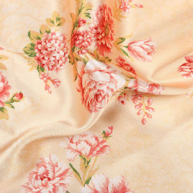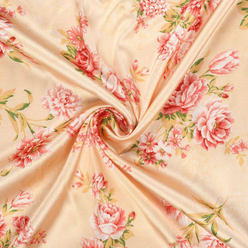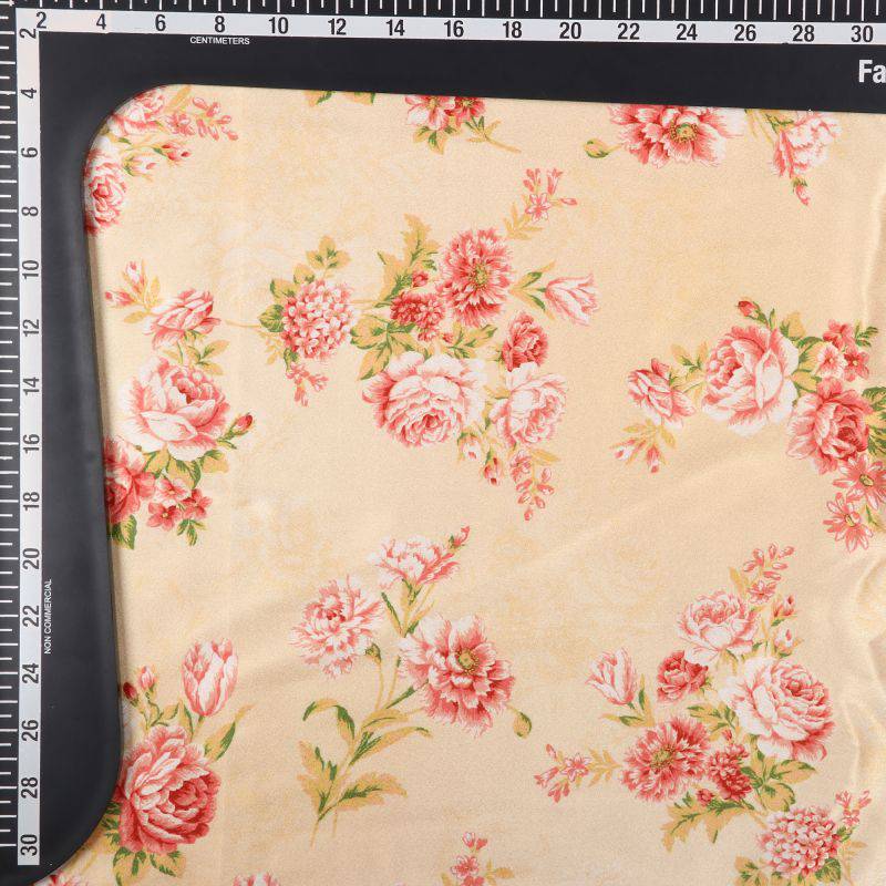 Dusty Yellow And Peach Floral Pattern Digital Print Japan Satin Fabric