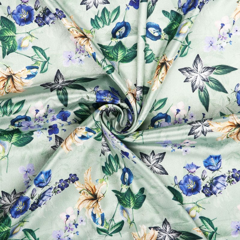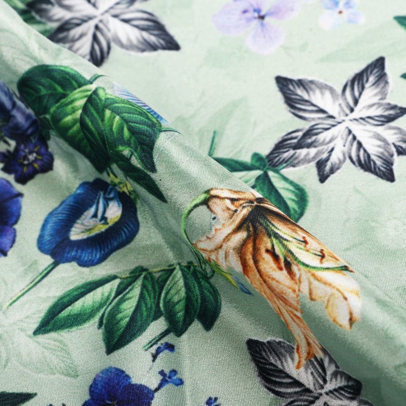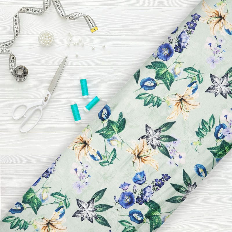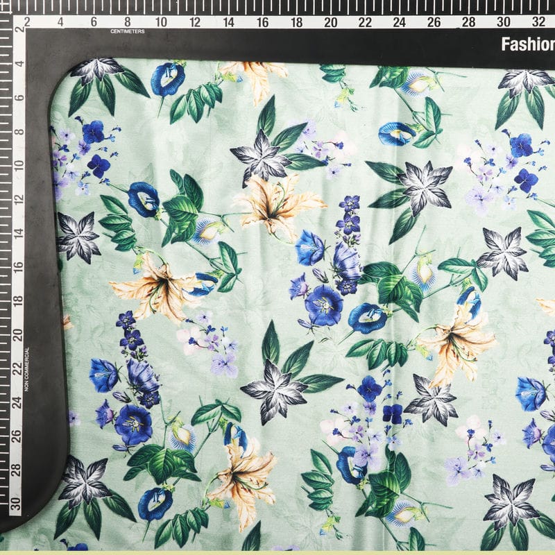 Green And Blue Floral Pattern Digital Print Silk Crepe Fabric
