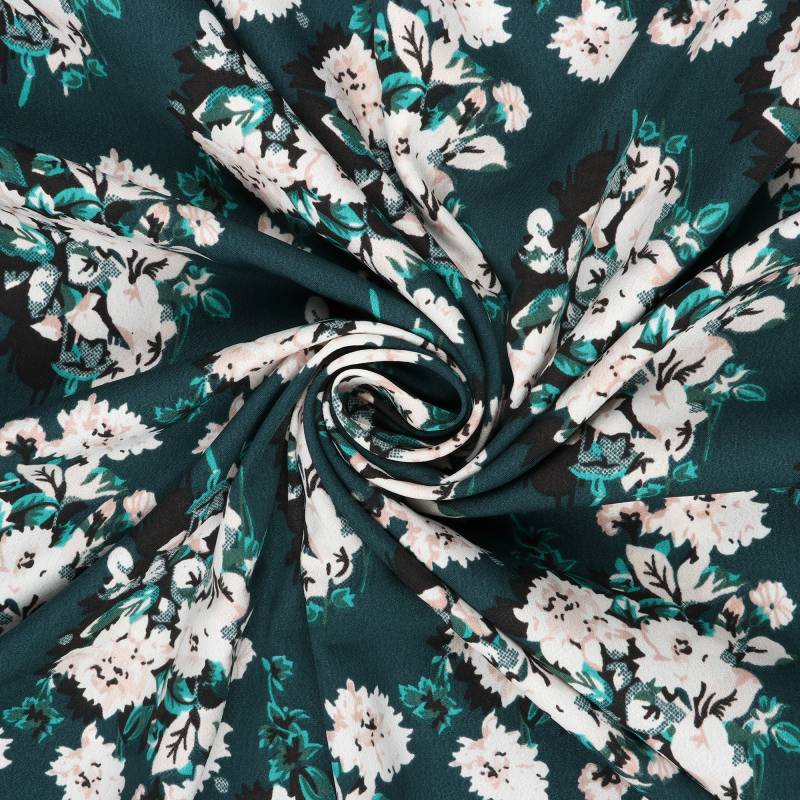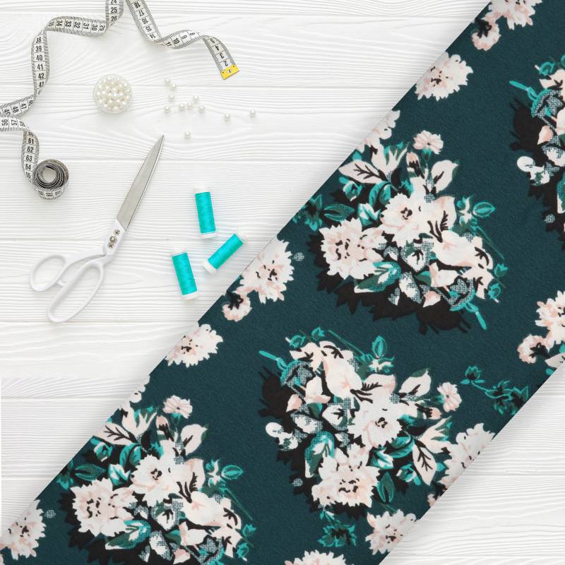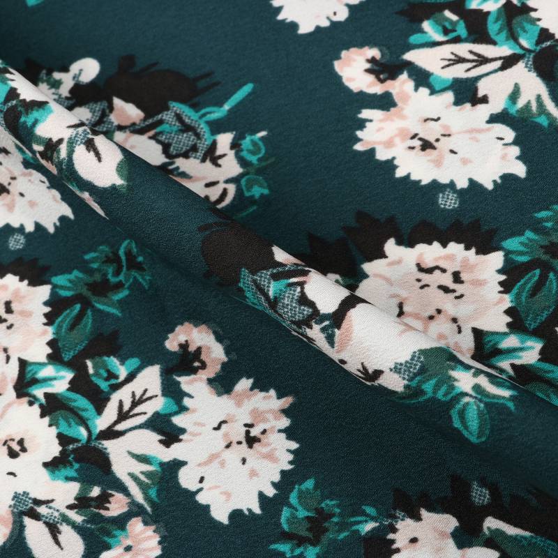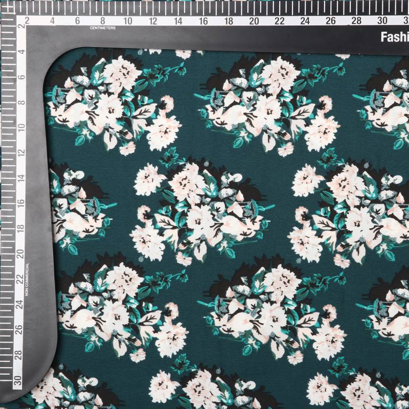 Green And White Floral Pattern Digital Print Crepe Fabric