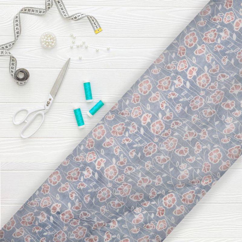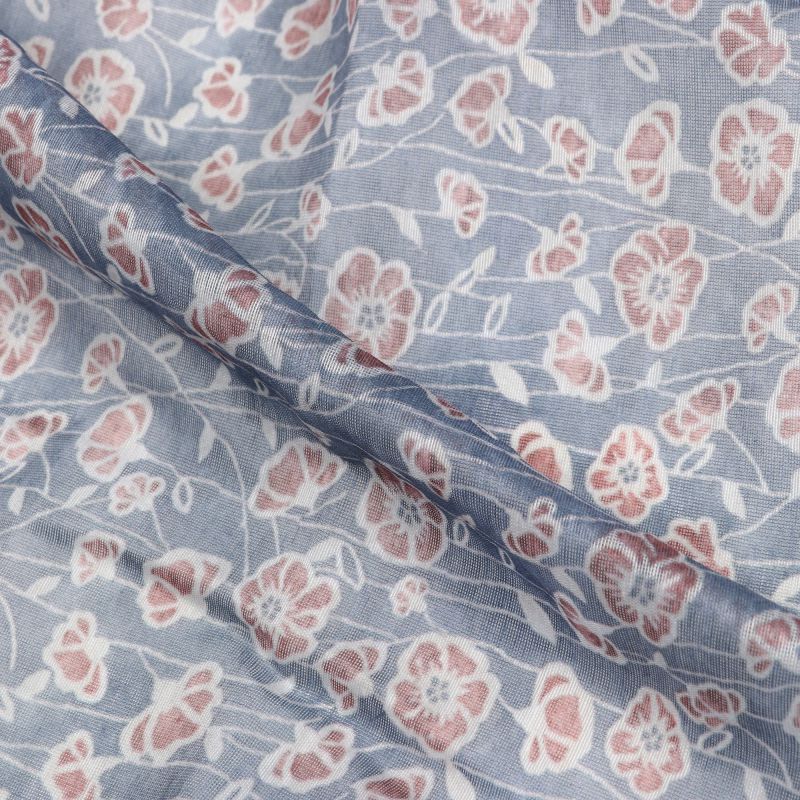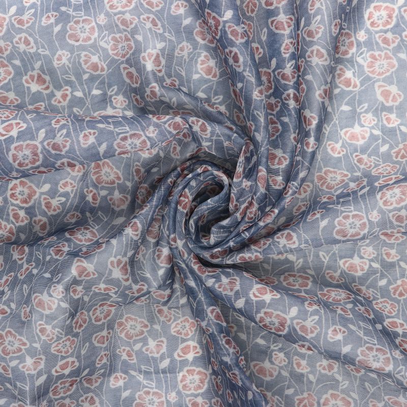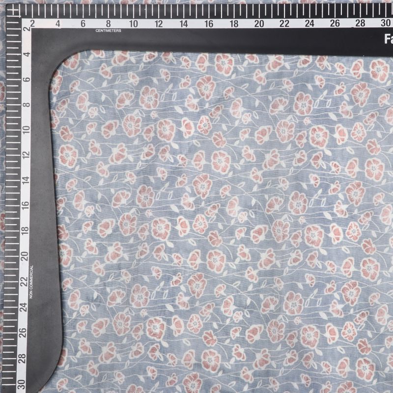 Grey And Red Floral Pattern Digital Print Chanderi Fabric