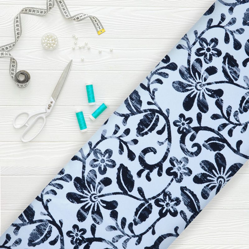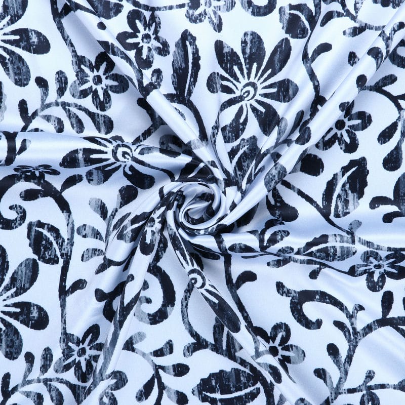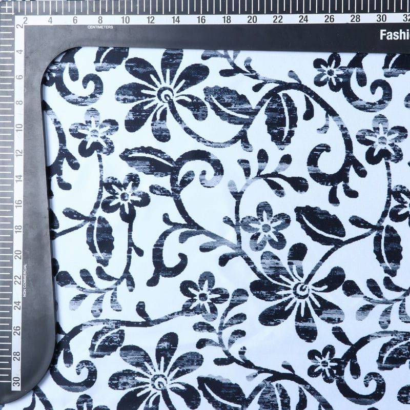 Grey Lavender And Black Floral Pattern Digital Print Silk Satin Fabric