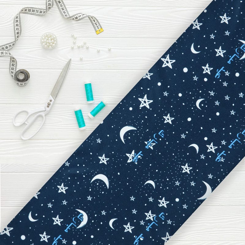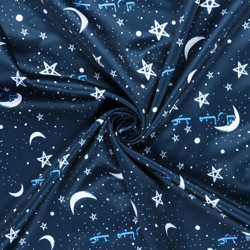 Greyish Blue And White Galaxy Pattern Digital Print Silk Satin Fabric