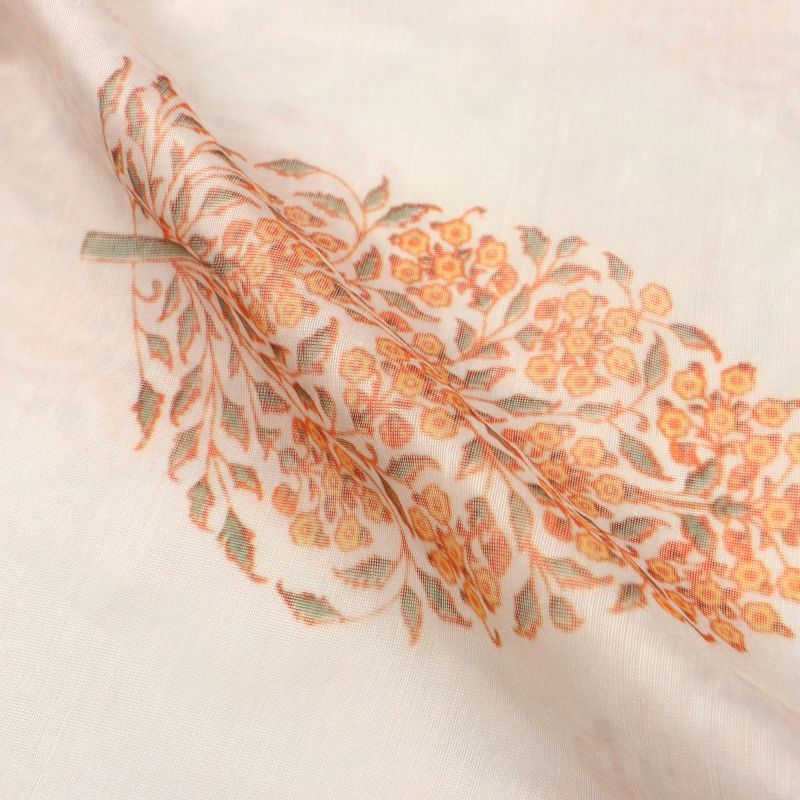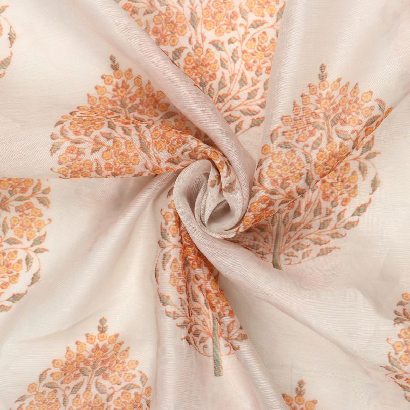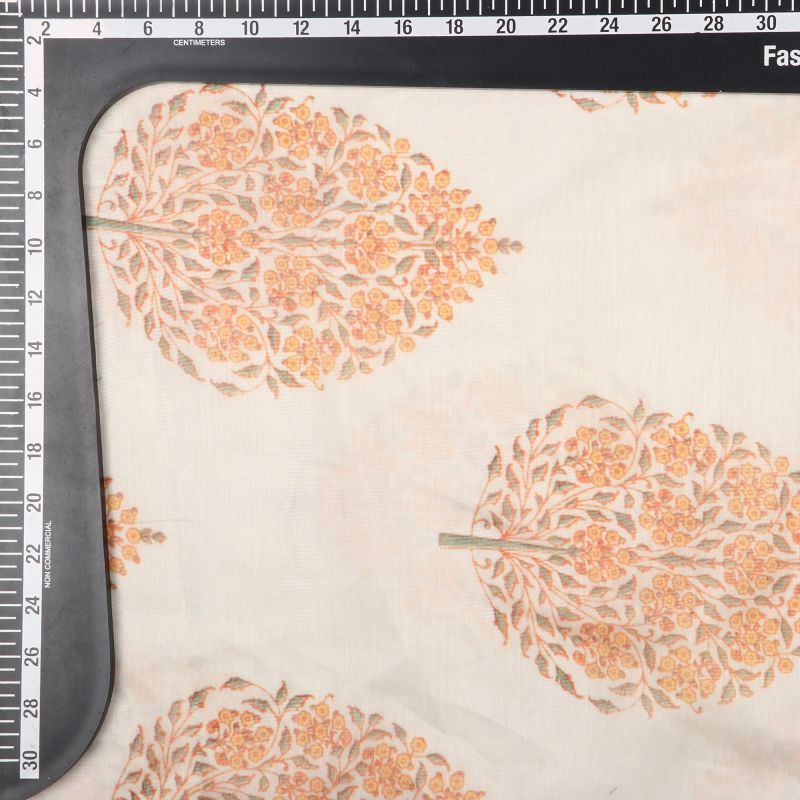 Ivory And Golden Yellow Mughal Pattern Digital Print Chanderi Fabric