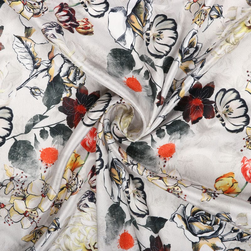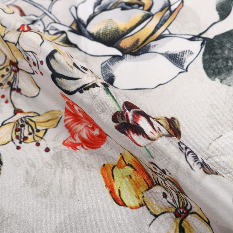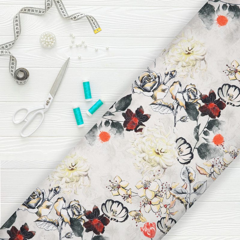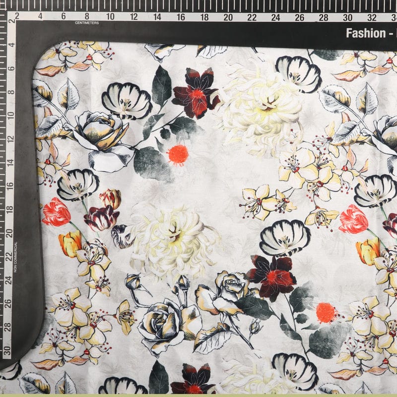Ivory And Yellow Floral Pattern Digital Print Silk Crepe Fabric