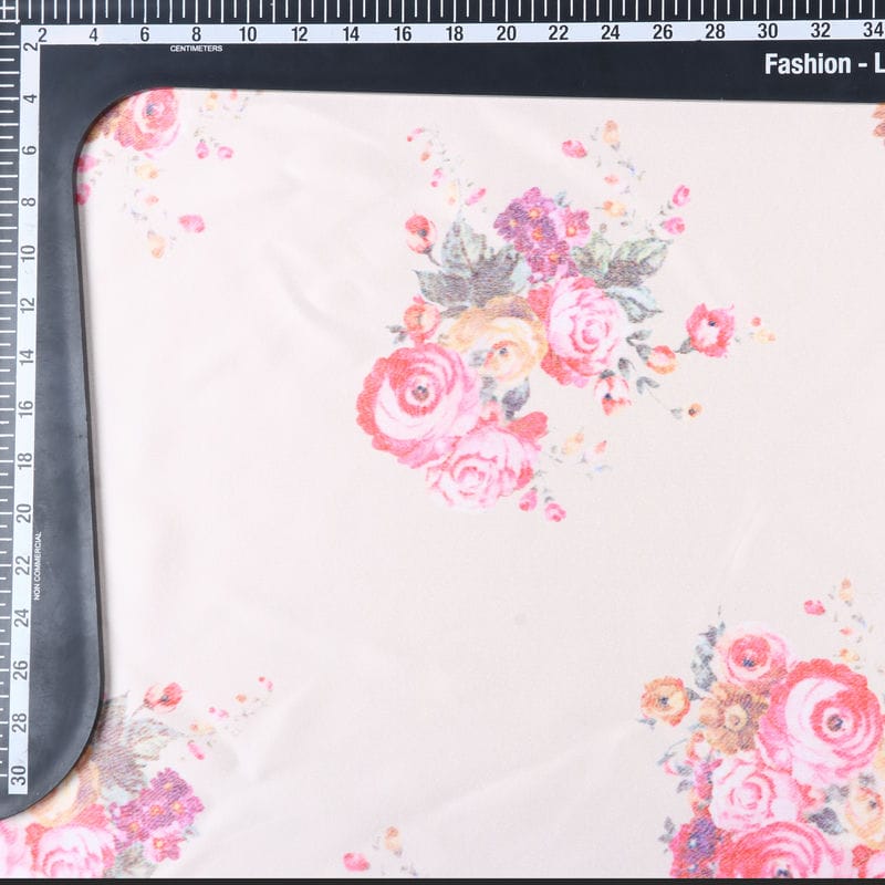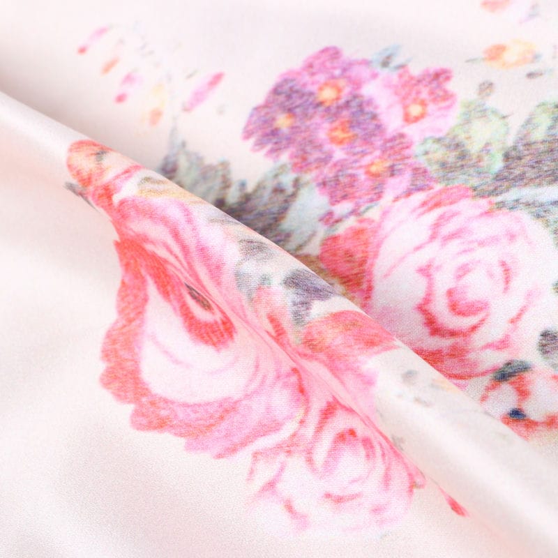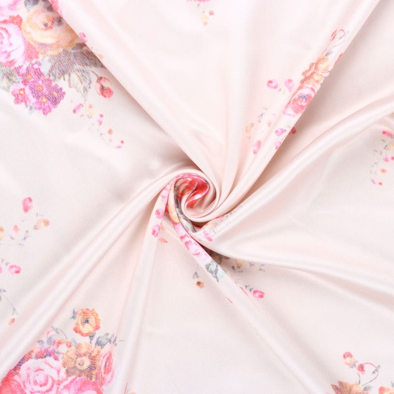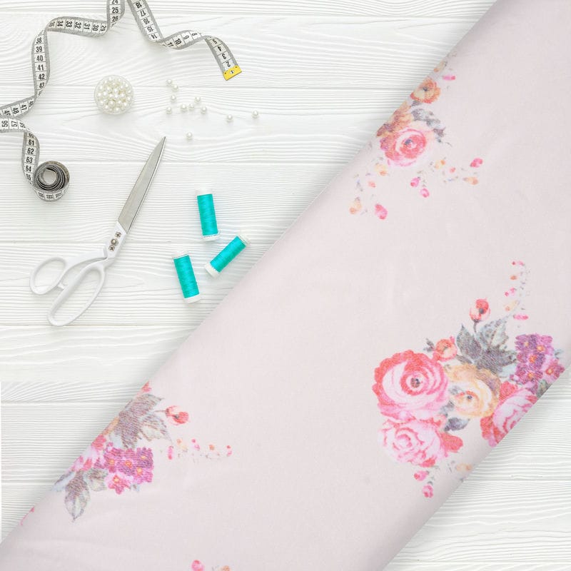 Light Peach And Pink Floral Pattern Digital Print Silk Satin Fabric