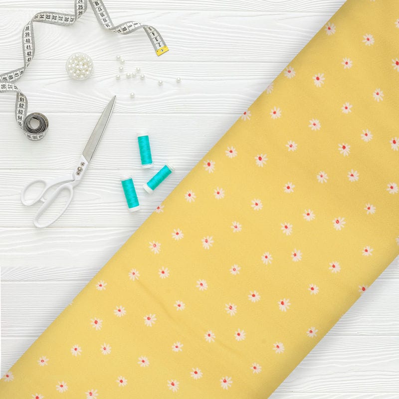 Light Yellow And White Floral Pattern Screen Print Rayon Fabric