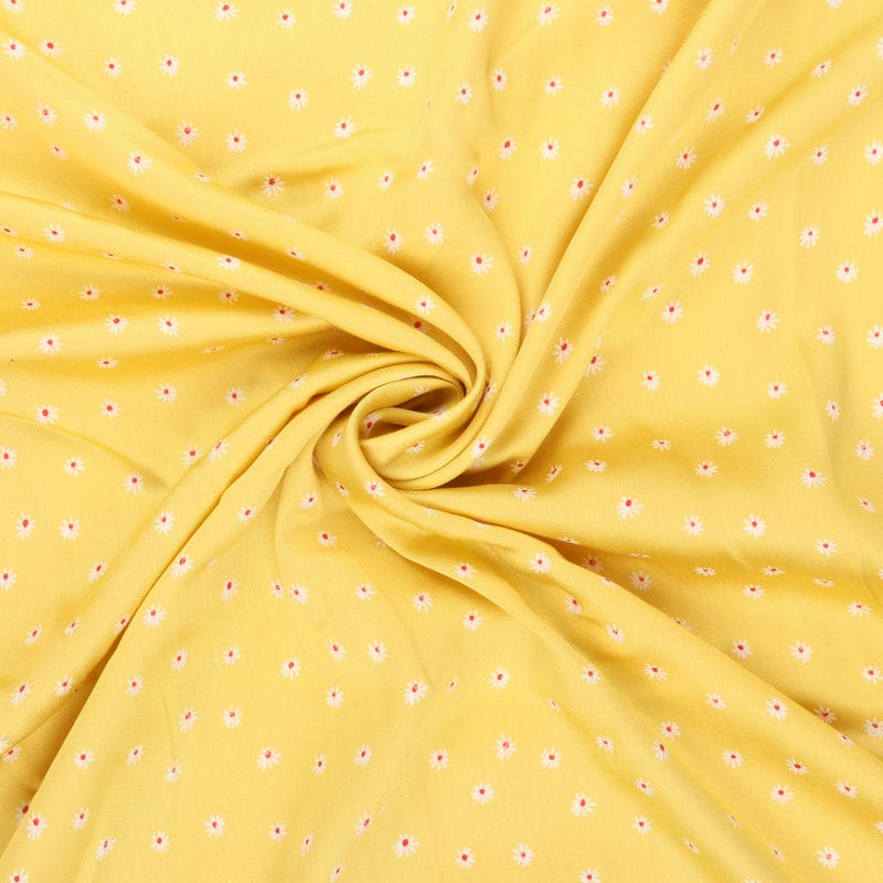 Top QualityLight Yellow And White Floral Pattern Screen Print Rayon Fabric