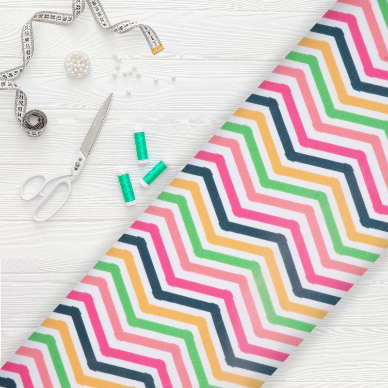 Multi Color Chevron Pattern Digital Print Rayon Fabric