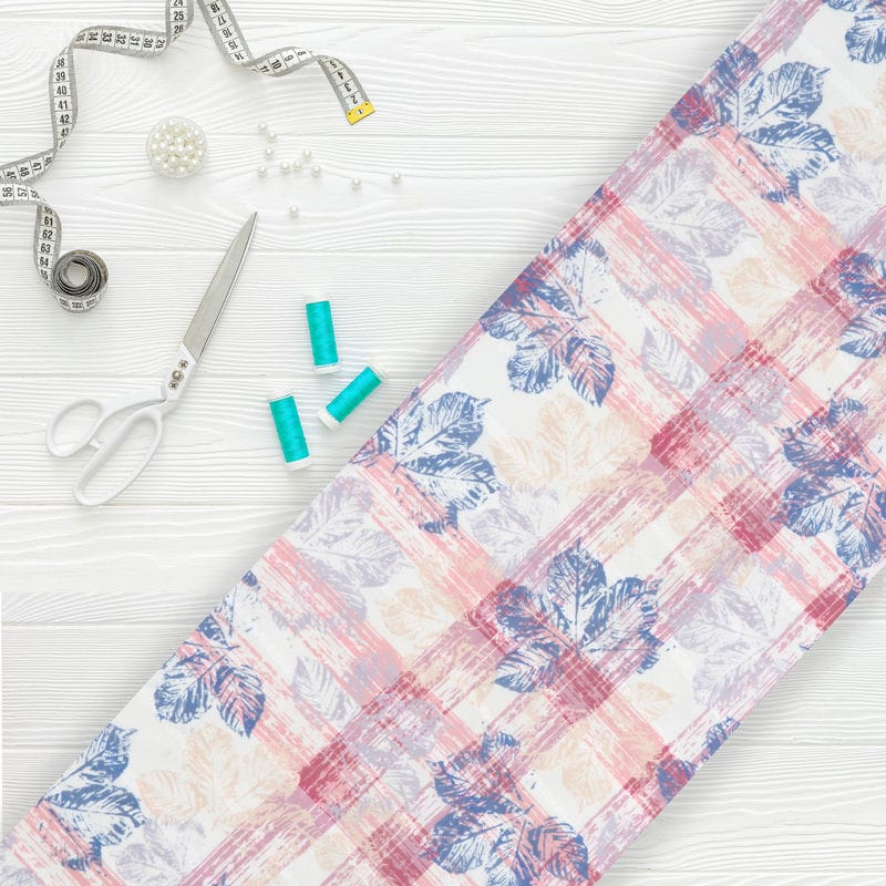 Multi Color Leaf Pattern Digital Print Stripe Jacquard Georgette Fabric
