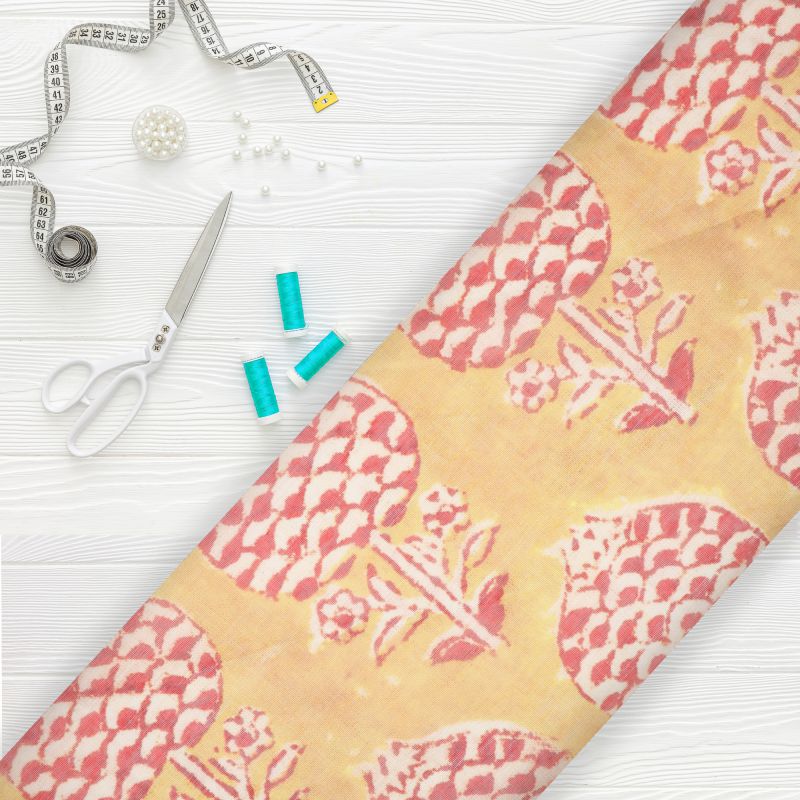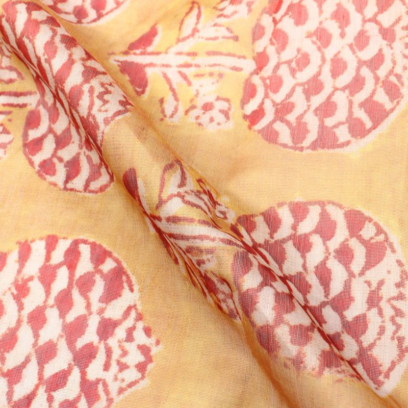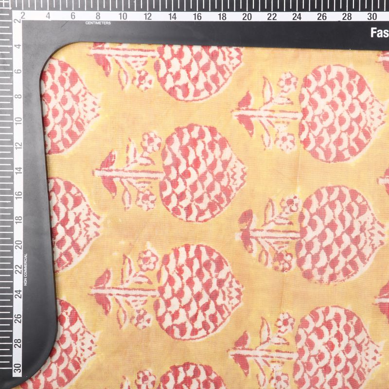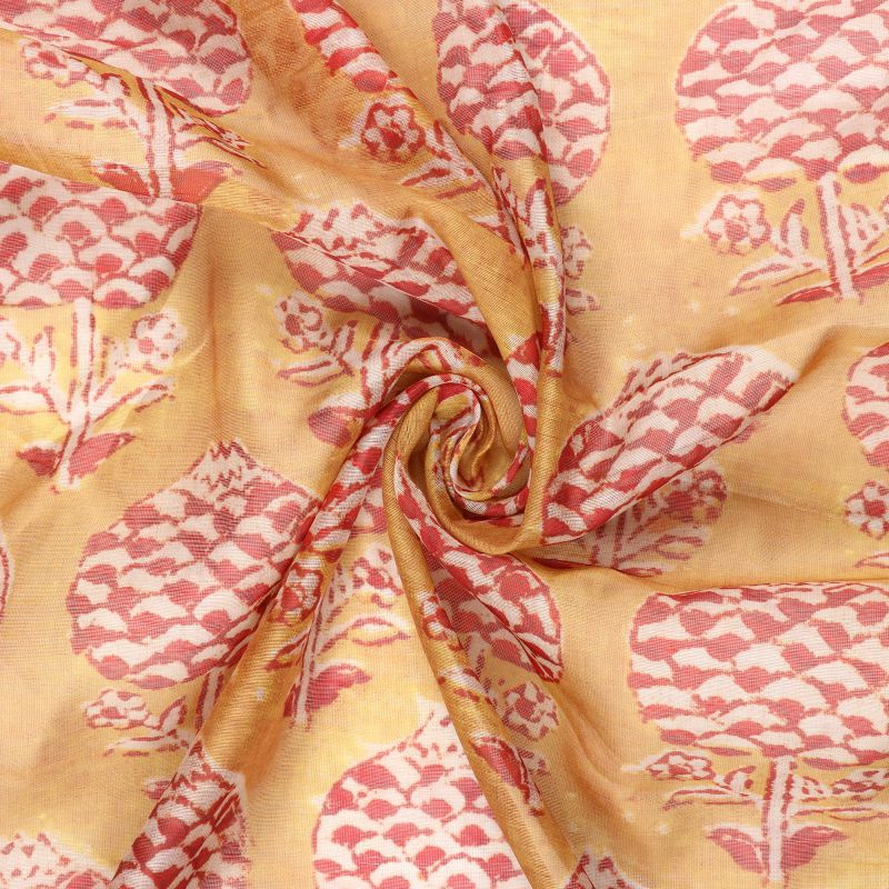 Mustard Yellow And Red Floral Pattern Digital Print Chanderi Fabric