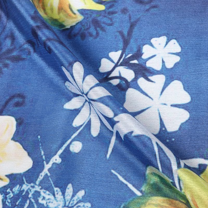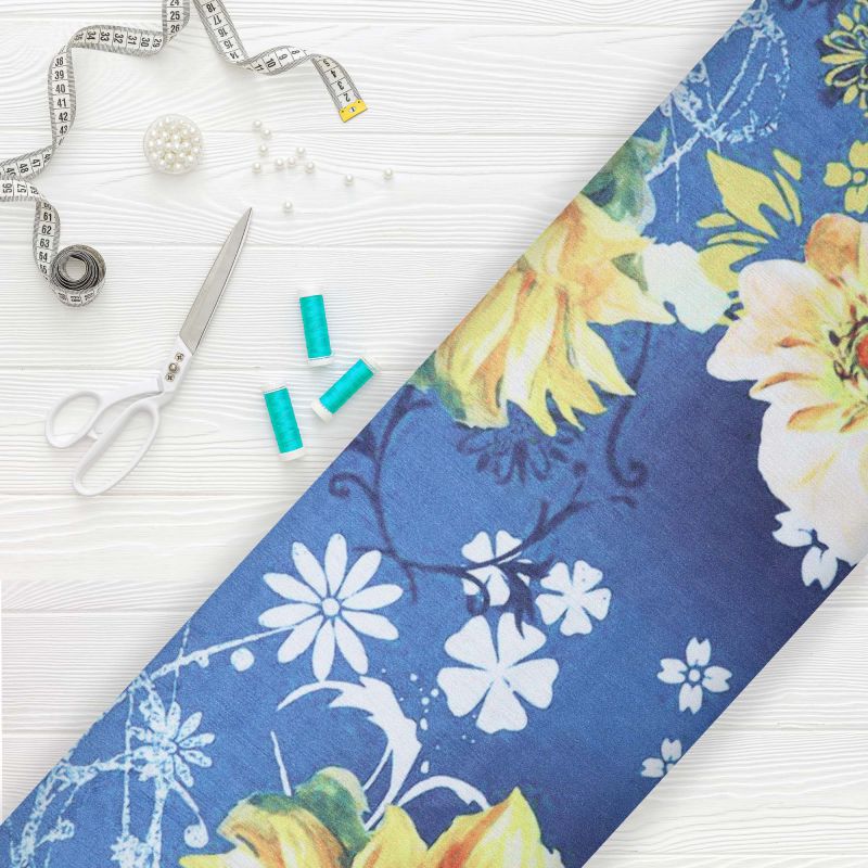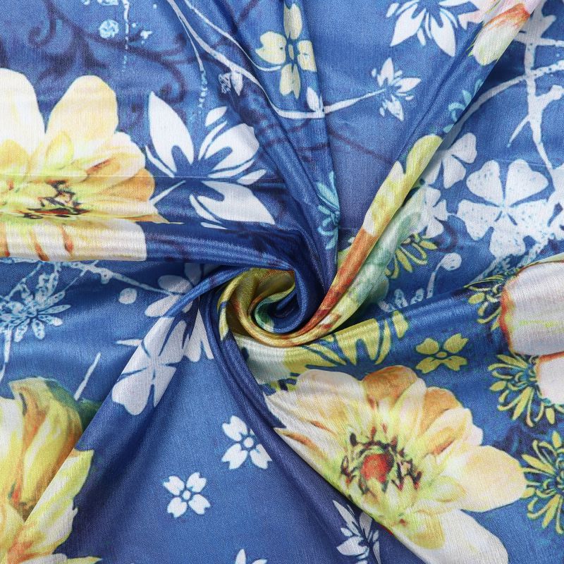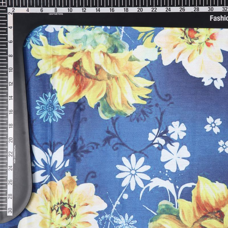 Navy Blue And Yellow Floral Pattern Digital Print Chinon Chiffon Fabric