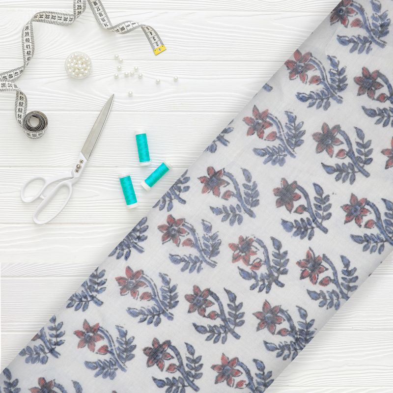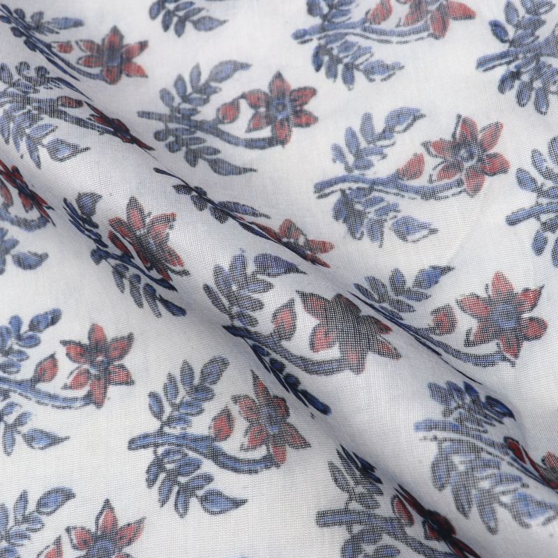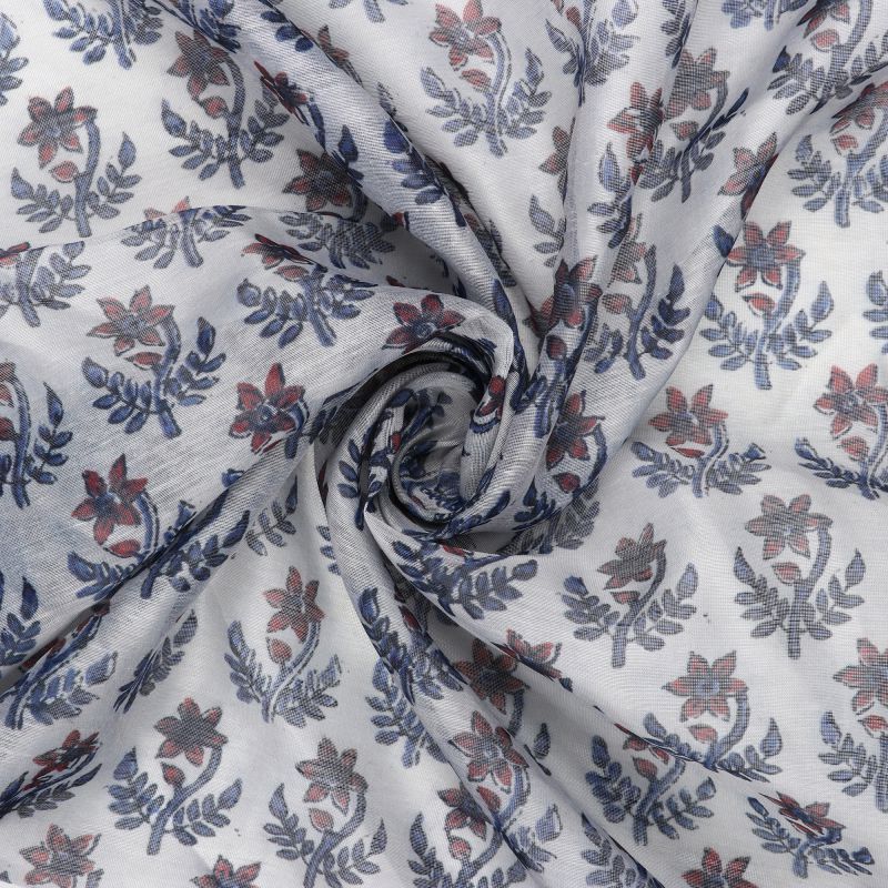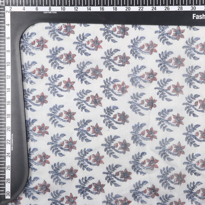 Off White And Dark Red Floral Pattern Digital Print Chanderi Fabric