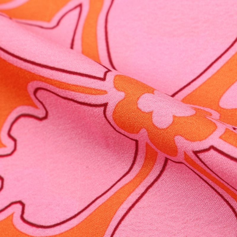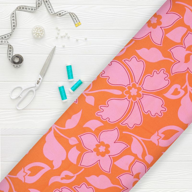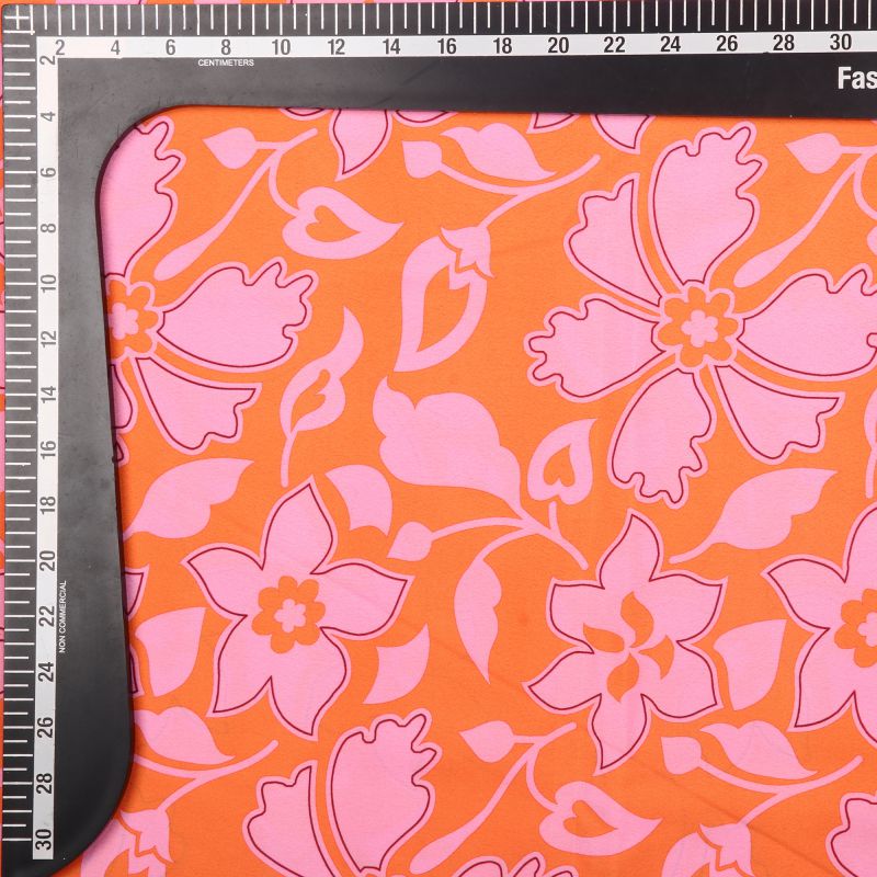 Orange And Pink Floral Pattern Digital Print American Crepe Fabric