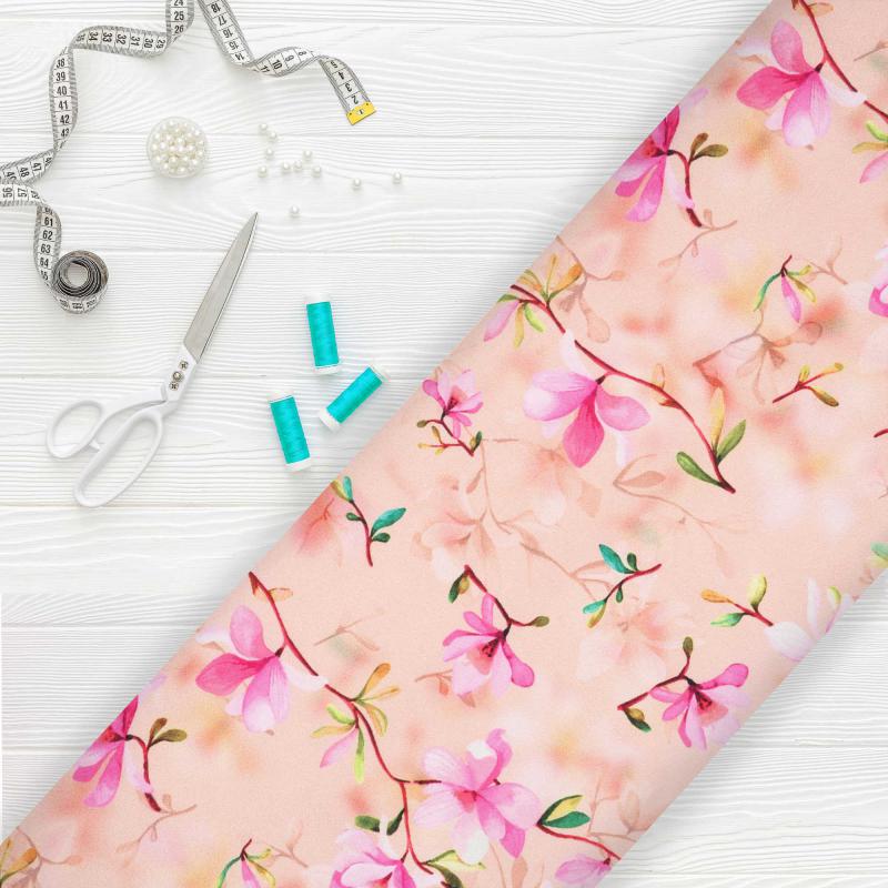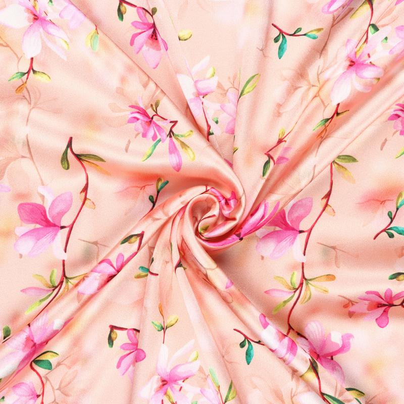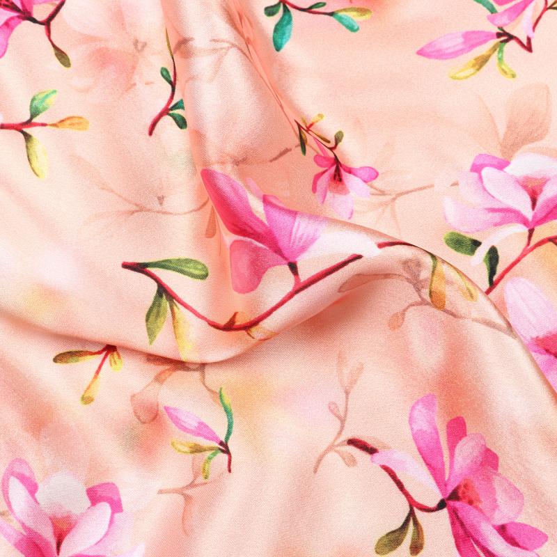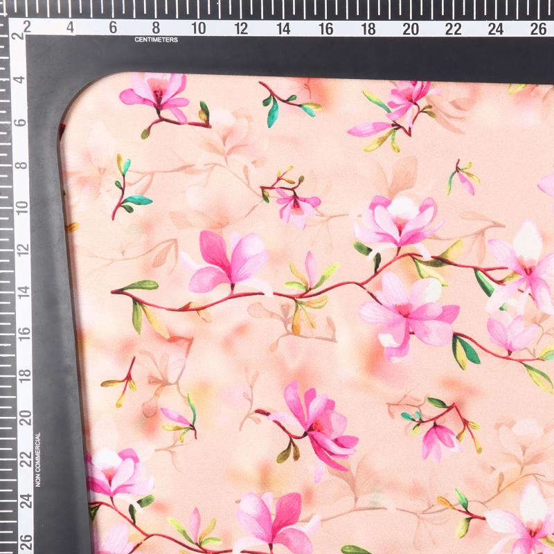 Peach And Pink Floral Pattern Digital Print Japan Satin Fabric