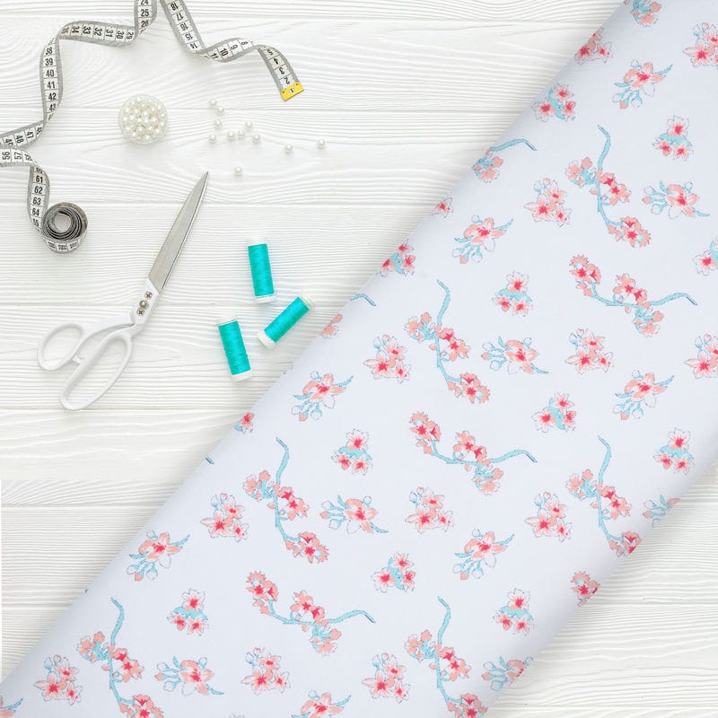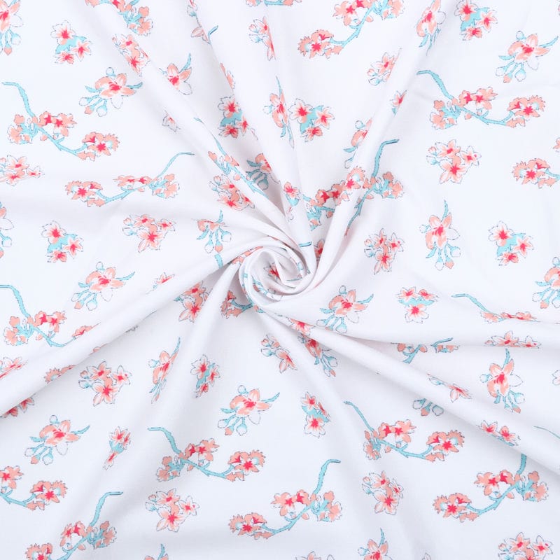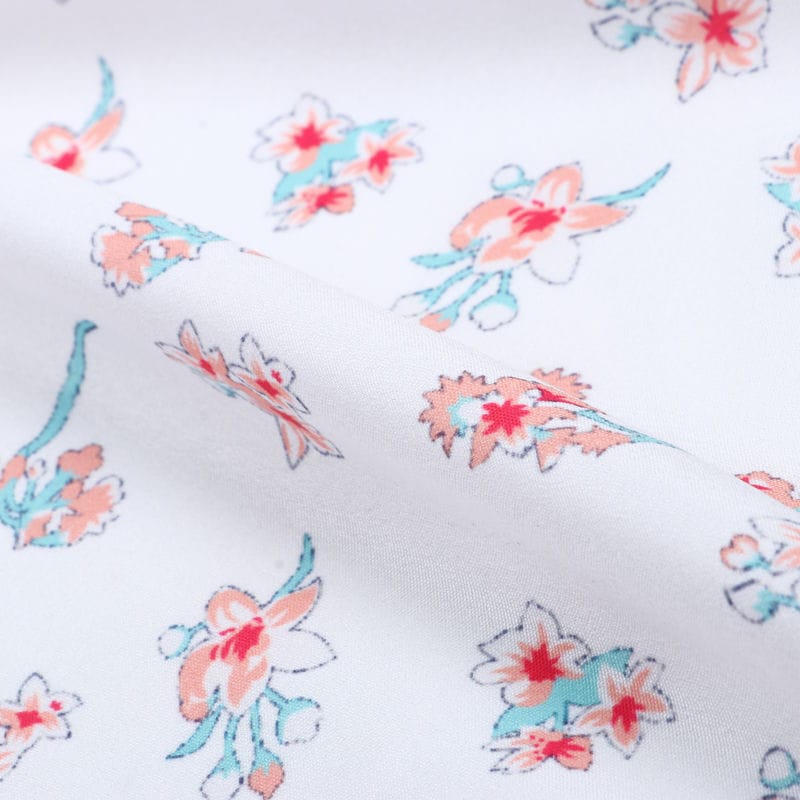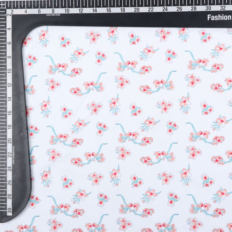 Peach And White Floral Pattern Digital Print Crepe Fabric