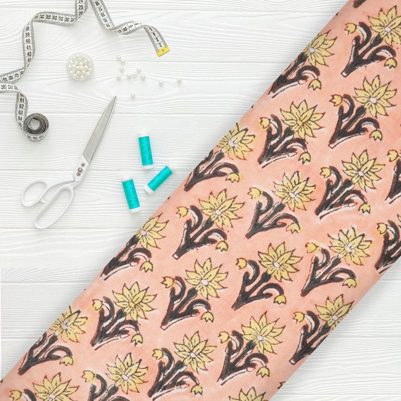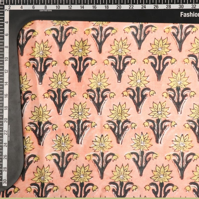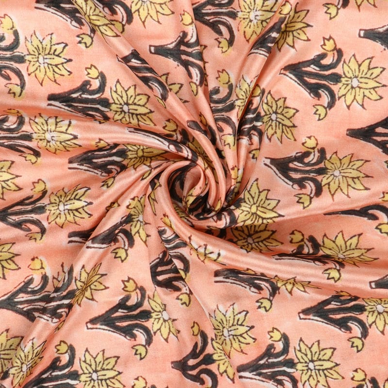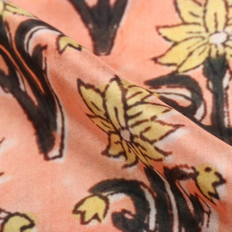 Peach And Yellow Floral Pattern Digital Print Silk Crepe Fabric
