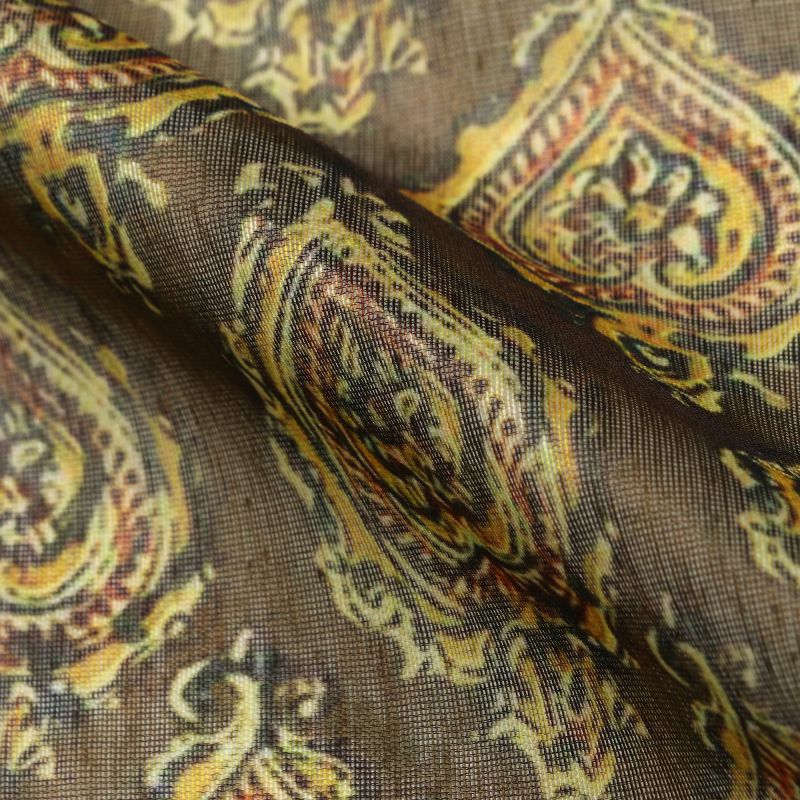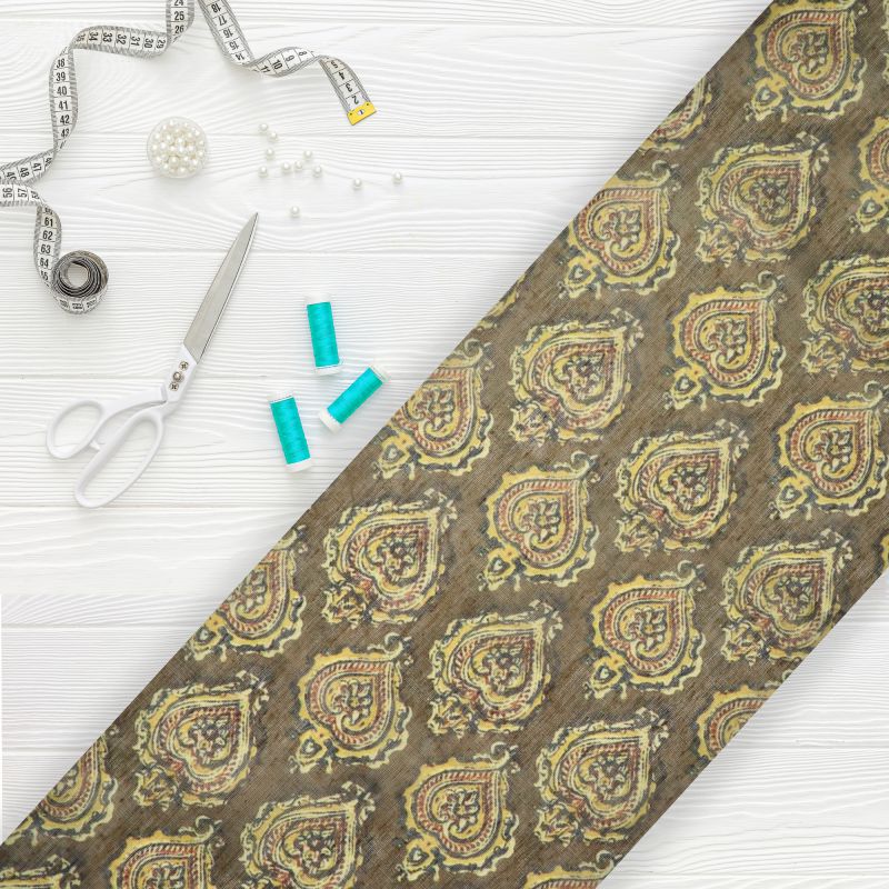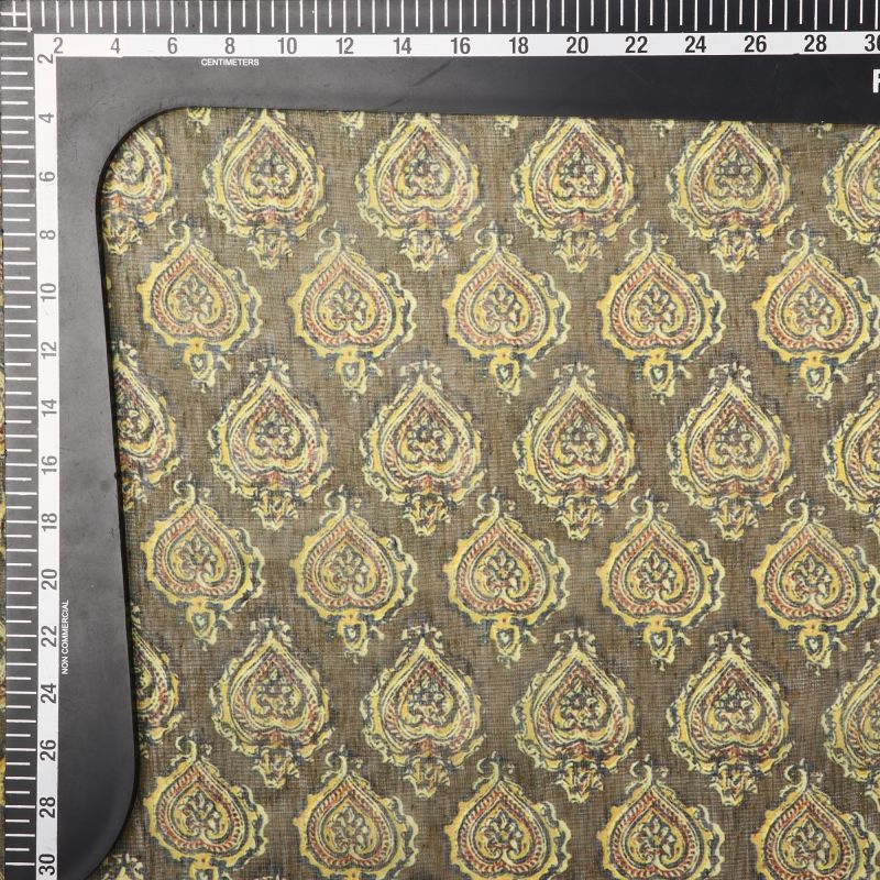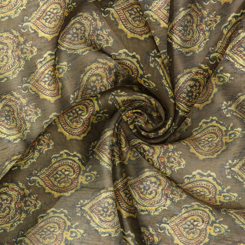 Pickle Green And Yellow Mughal Pattern Digital Print Chanderi Fabric