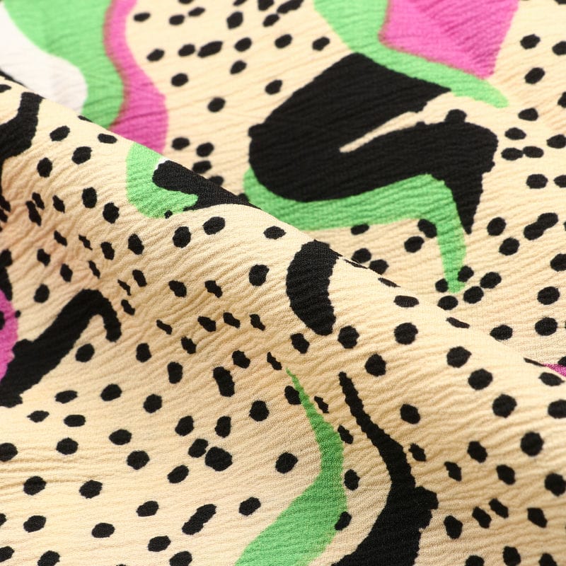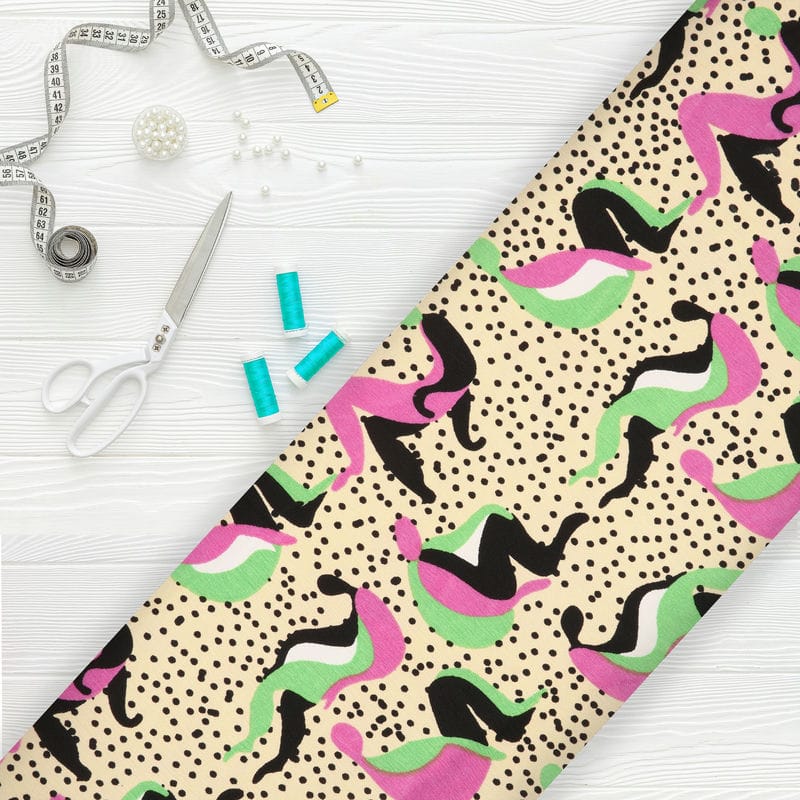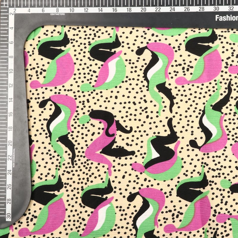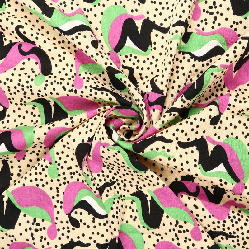 Pink And Beige Abstract Pattern Screen Print Delta Crepe Fabric