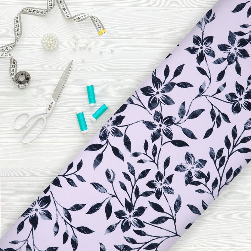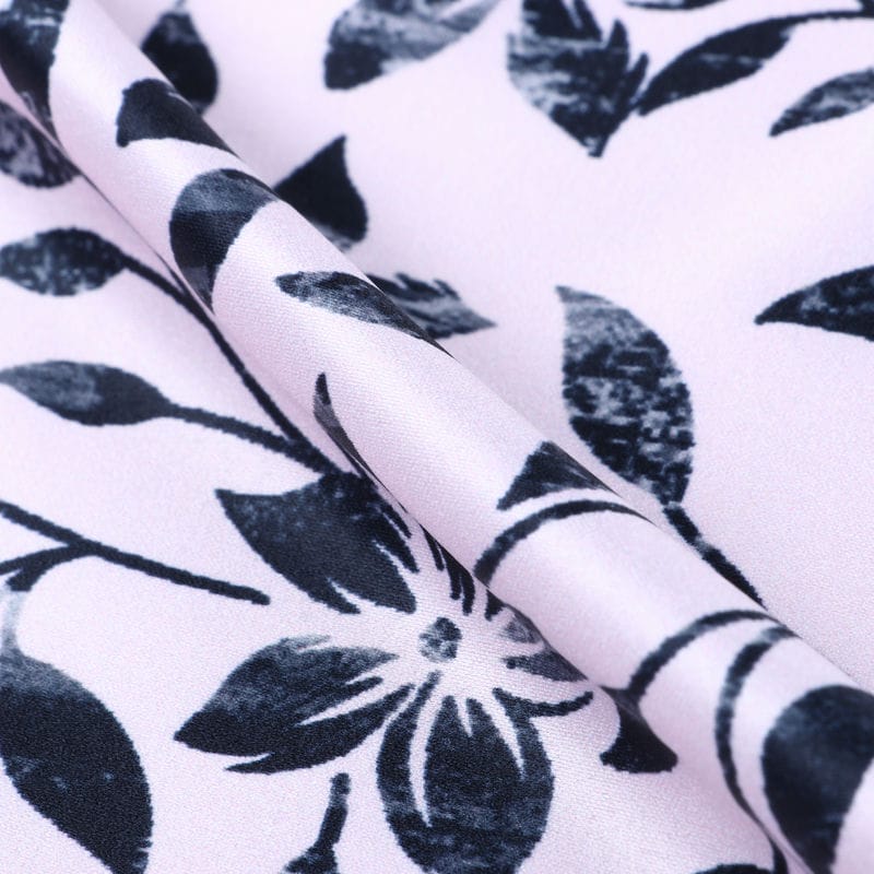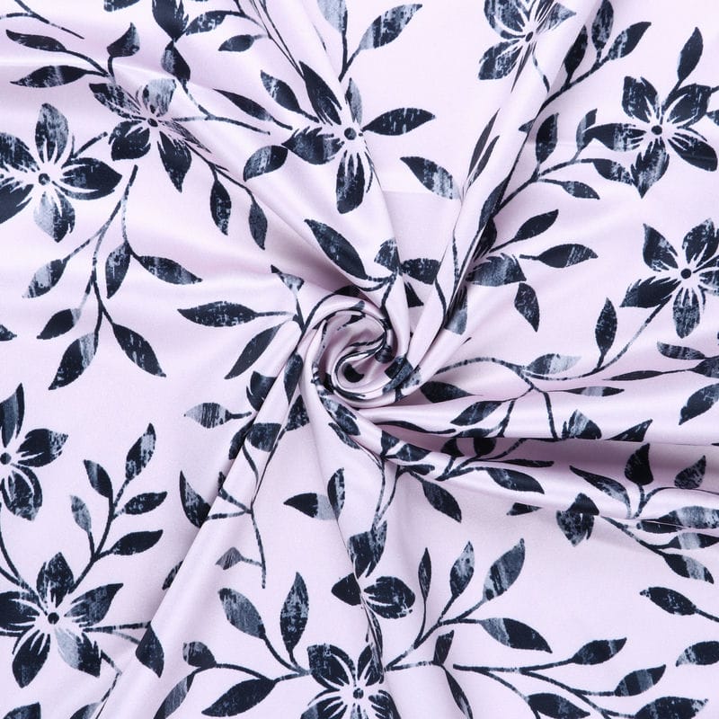 Pink And Black Floral Pattern Digital Print Silk Satin Fabric