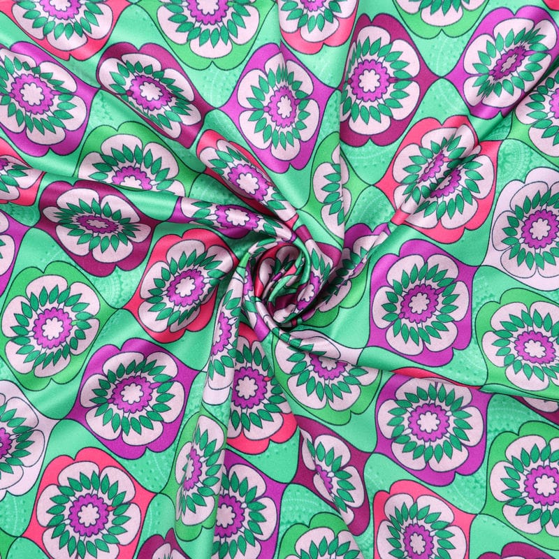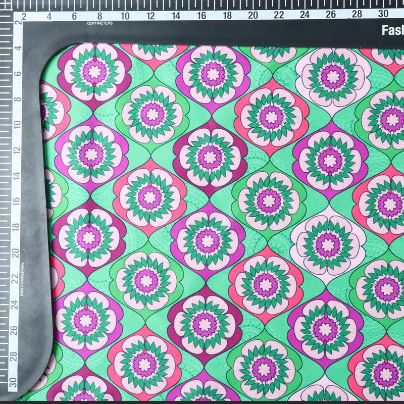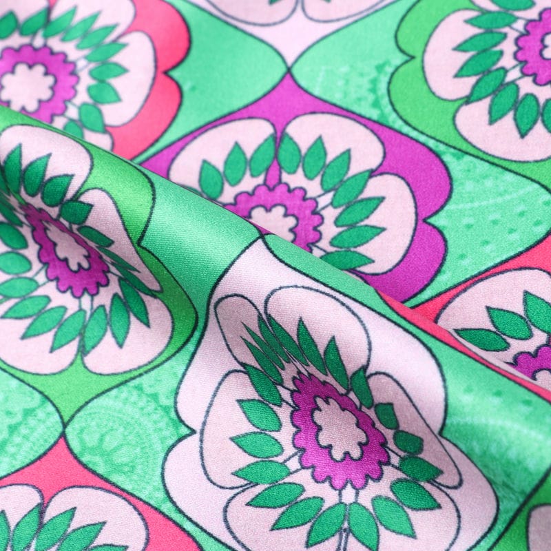 Pink And Green Traditional Pattern Digital Print Silk Satin Fabric