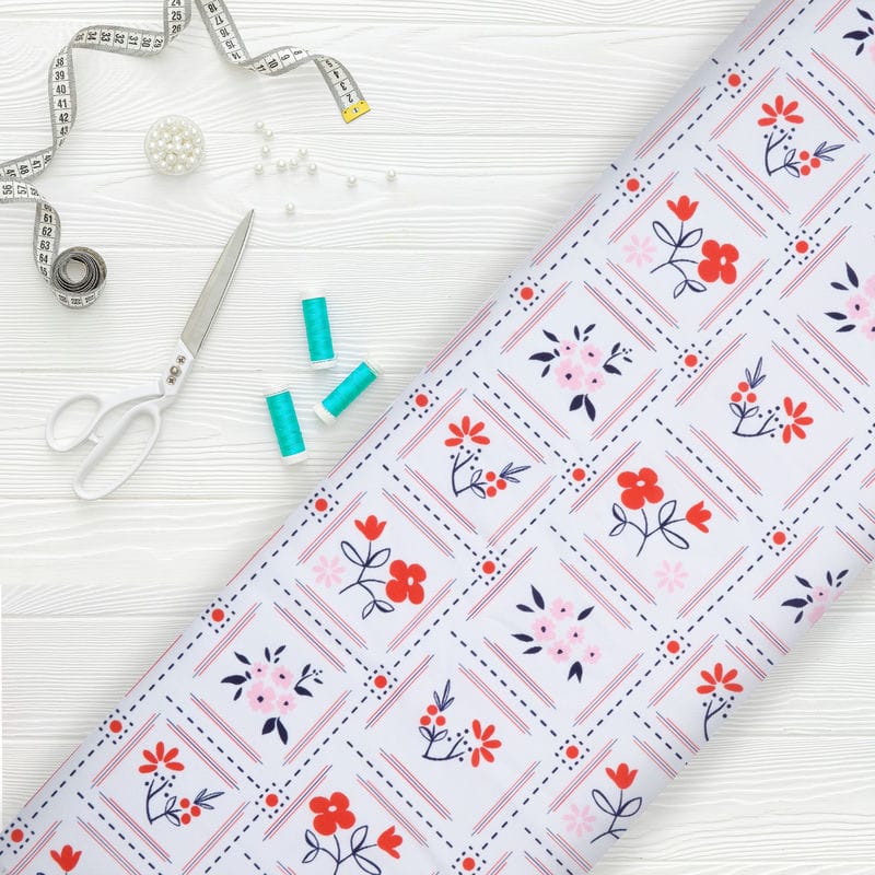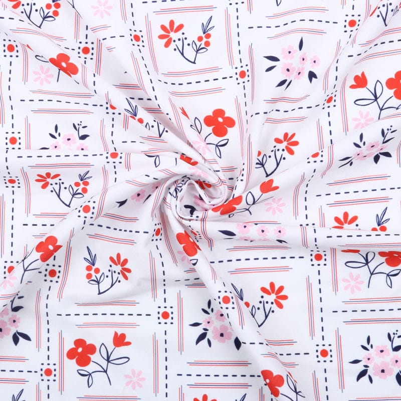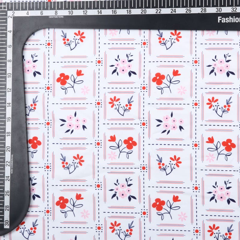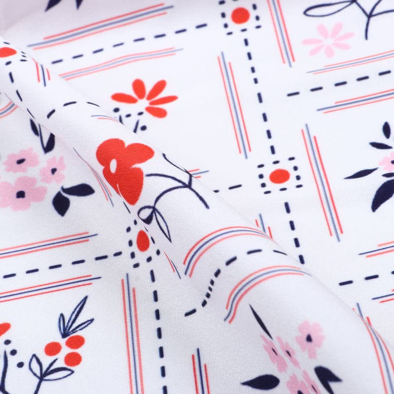 Pink And Red Floral Pattern Digital Print Crepe Fabric