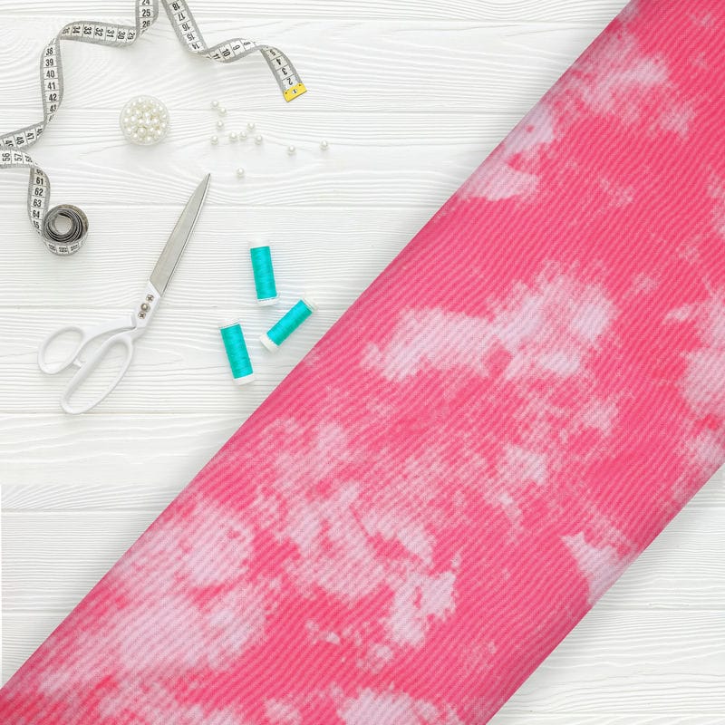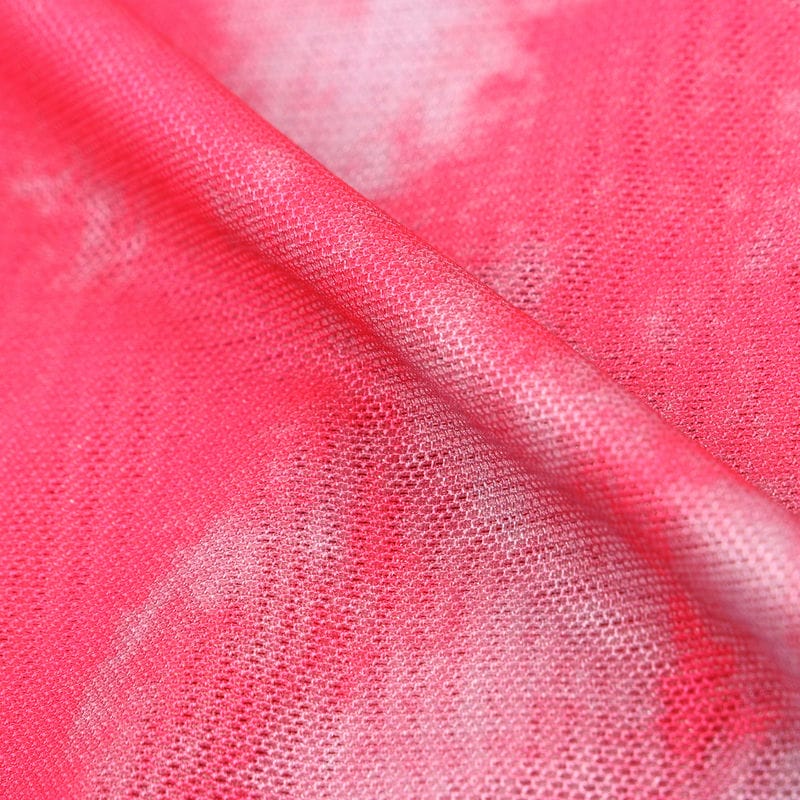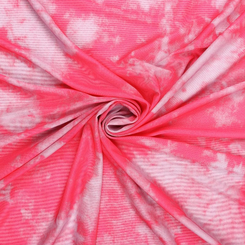 Pink And White Tie & Dye Pattern Digital Print Mesh Fabric
