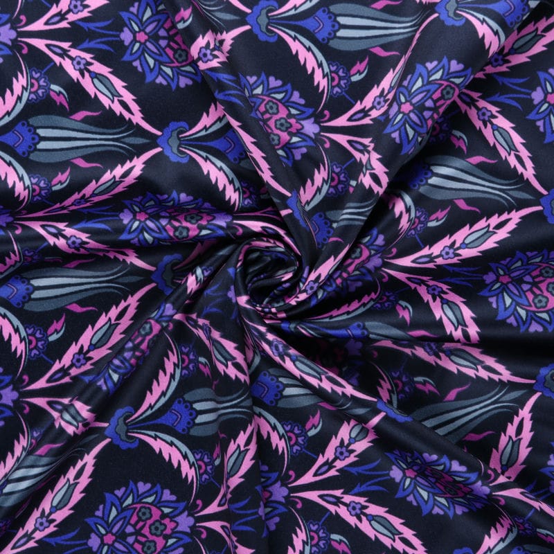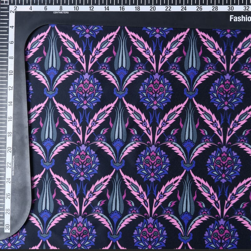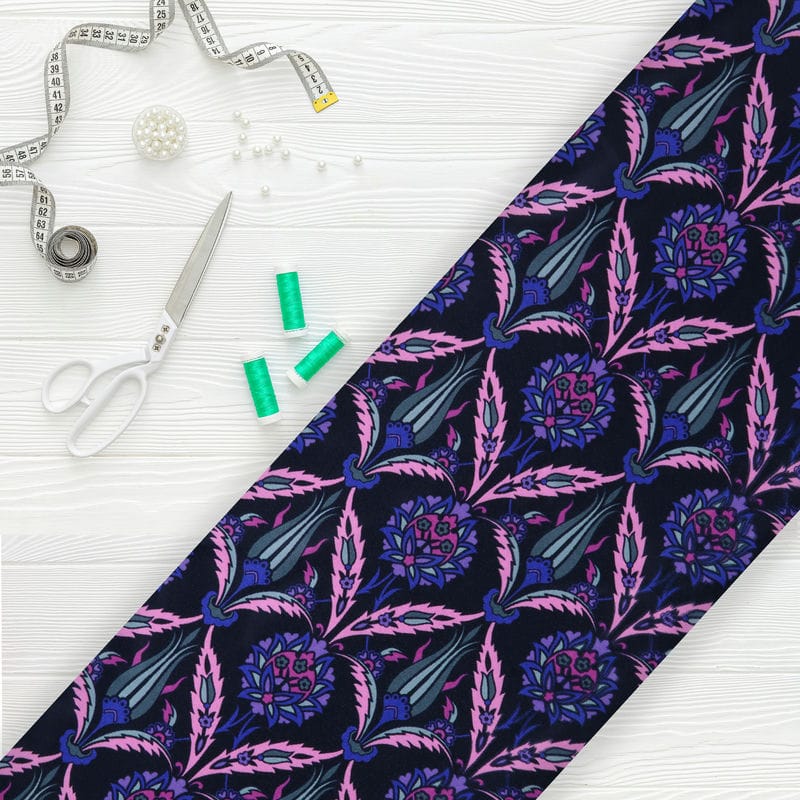 Purple And Pink Floral Pattern Digital Print Silk Satin Fabric