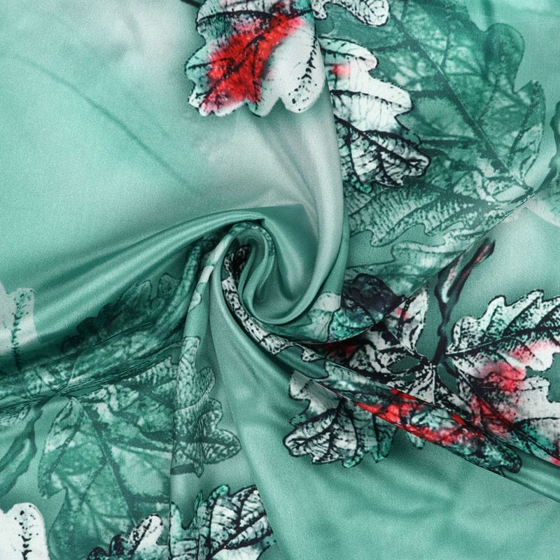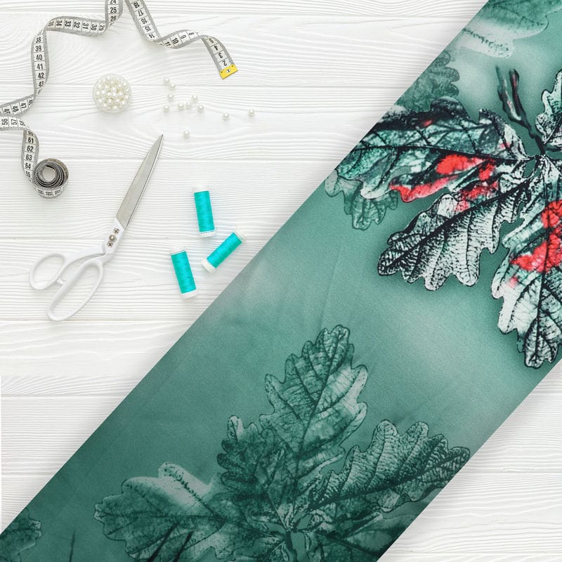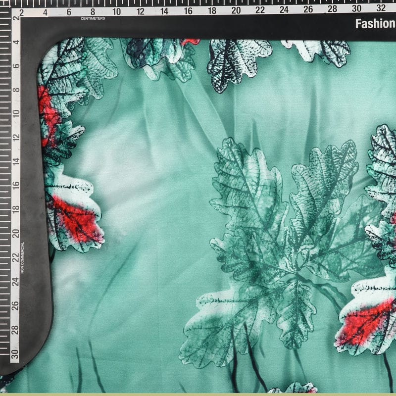 Rama Green And Red Floral Pattern Digital Print Silk Crepe Fabric