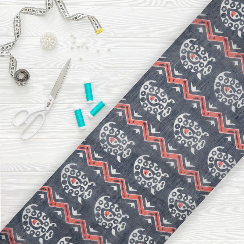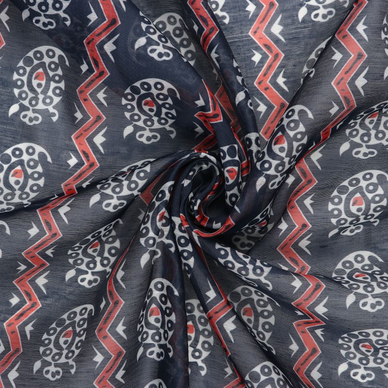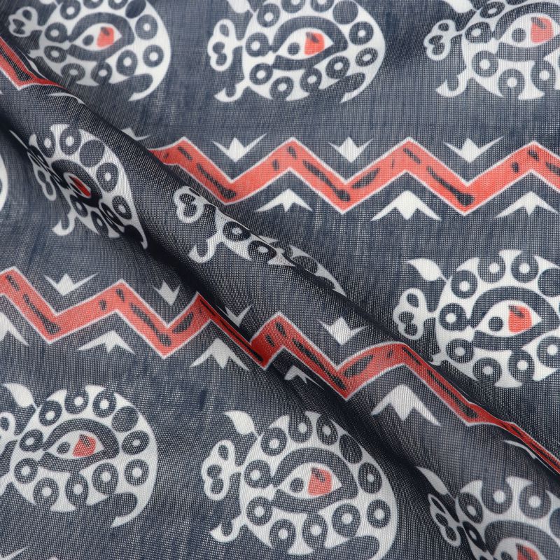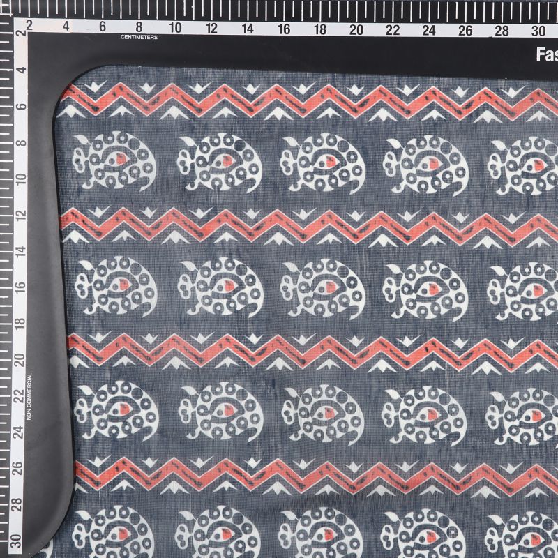 Red And Black Paisley Pattern Digital Print Chanderi Fabric