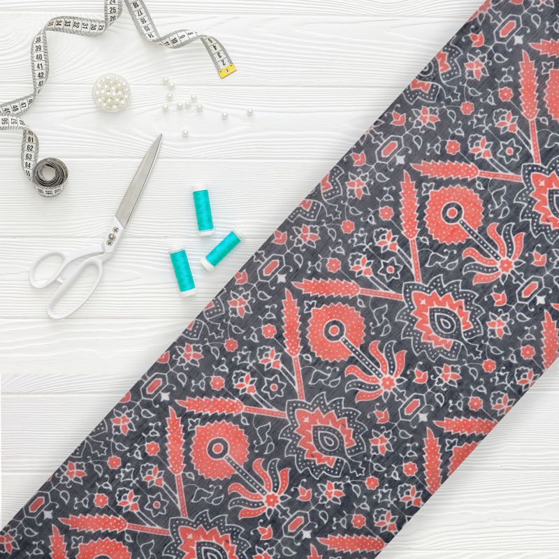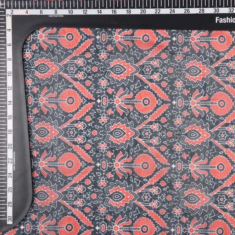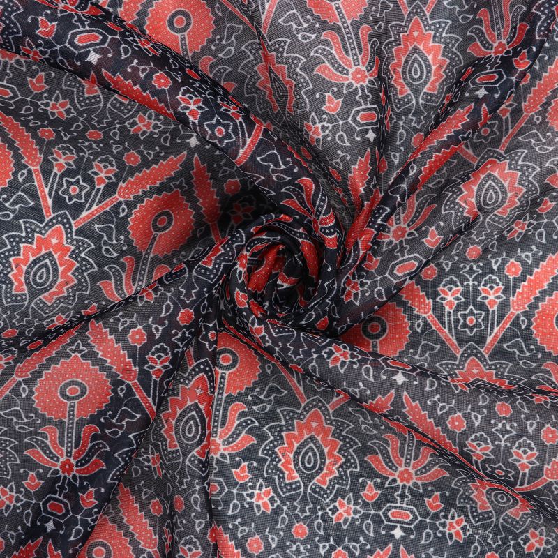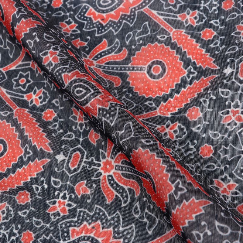 Red And Black Traditional Pattern Digital Print Chanderi Fabric