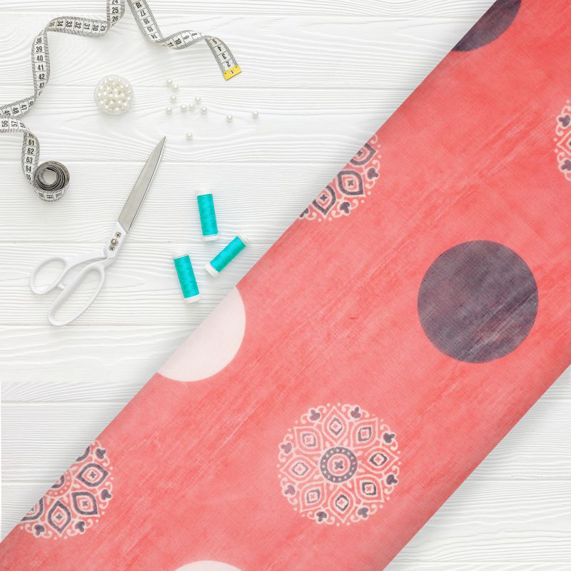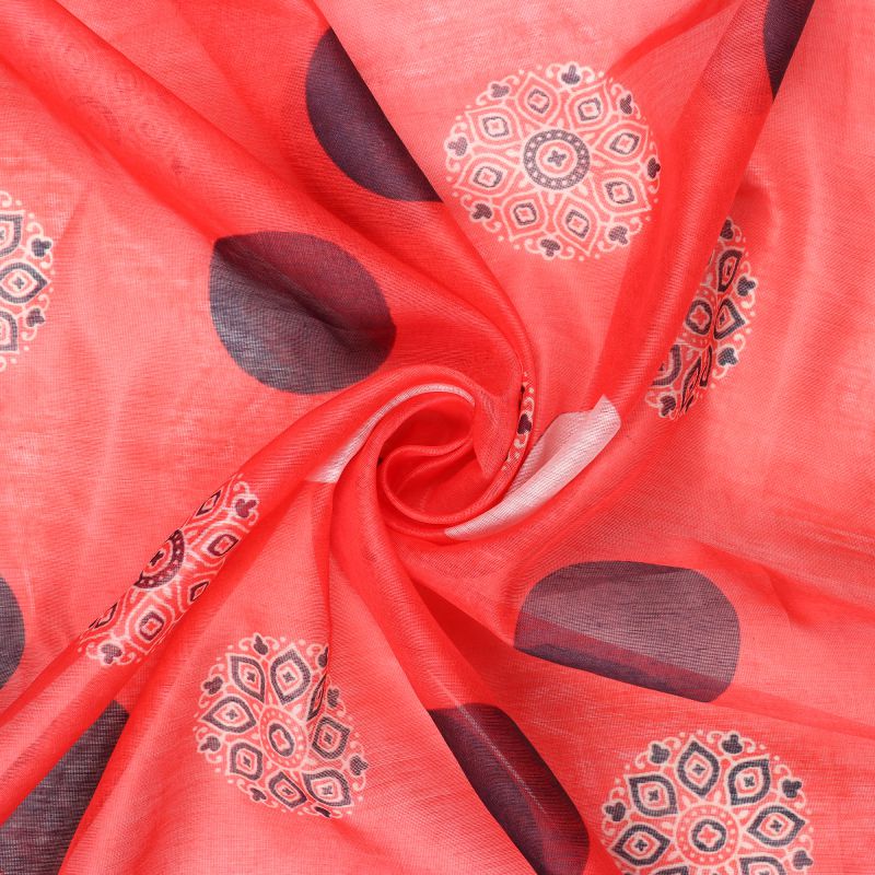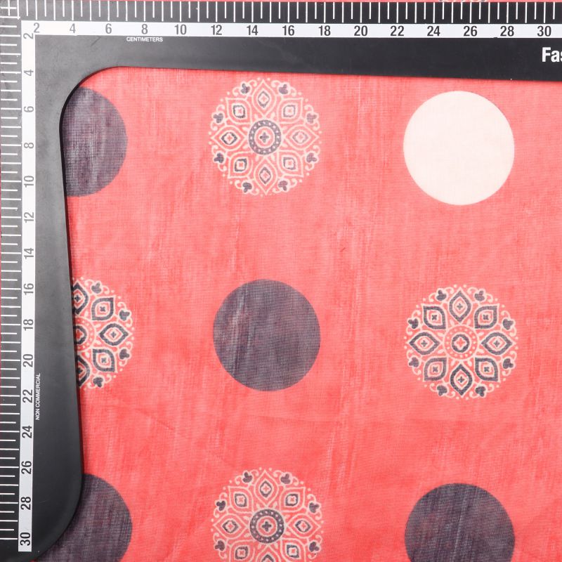 Red And Black Traditional Pattern Digital Print Chanderi Fabric