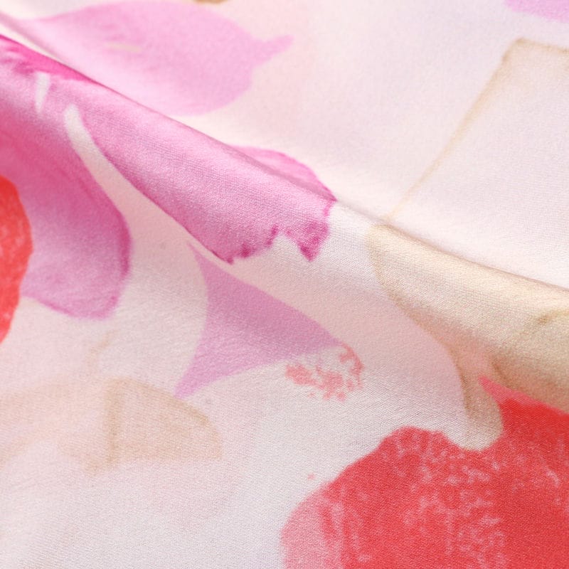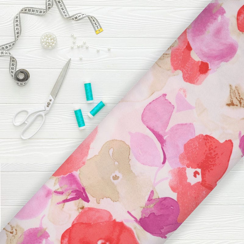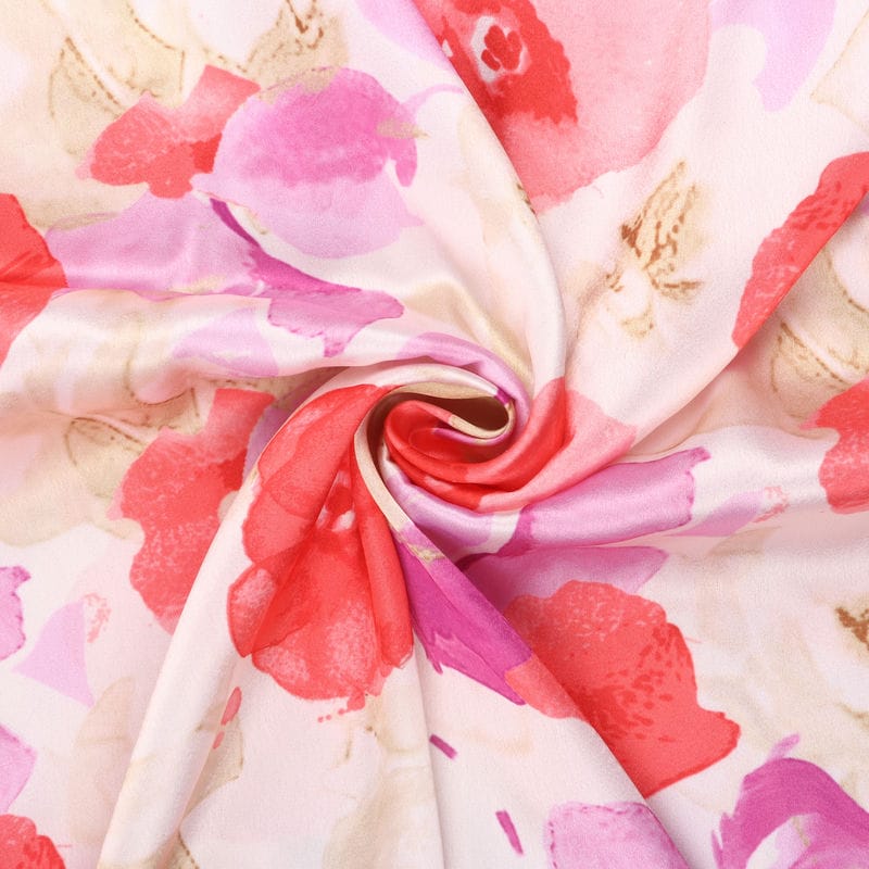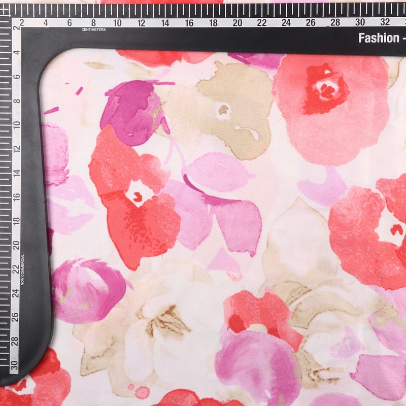 Red And Light Beige Floral Pattern Digital Print Japan Satin Fabric