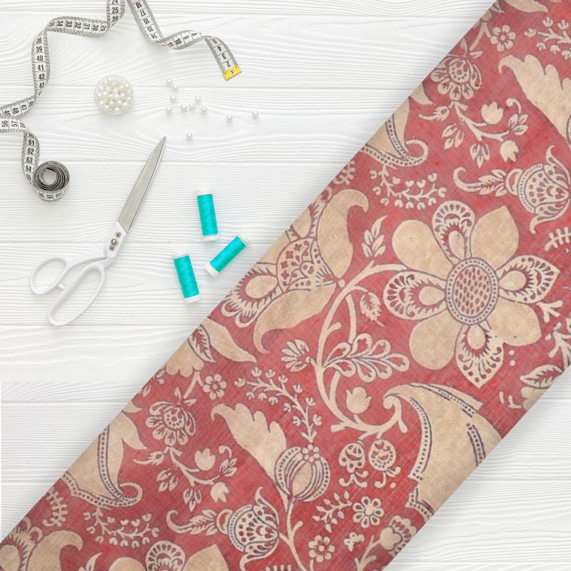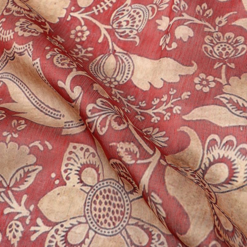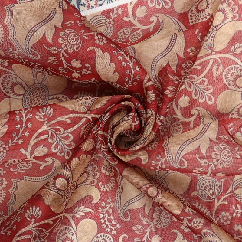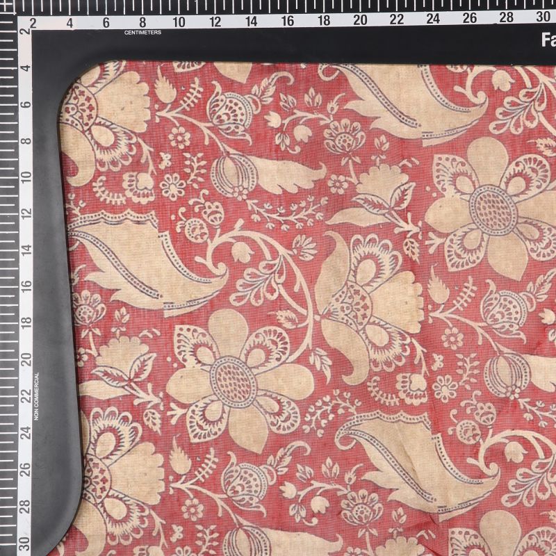 Red And Navajo Yellow Floral Pattern Digital Print Chanderi Fabric