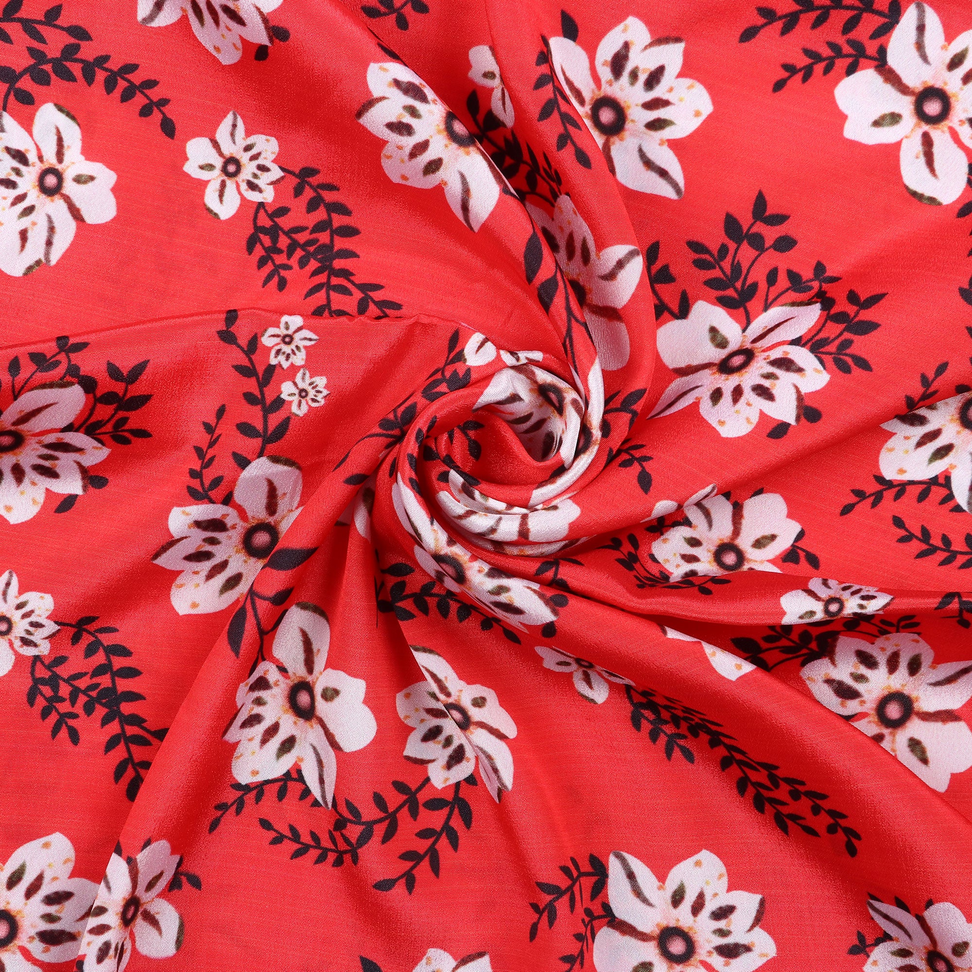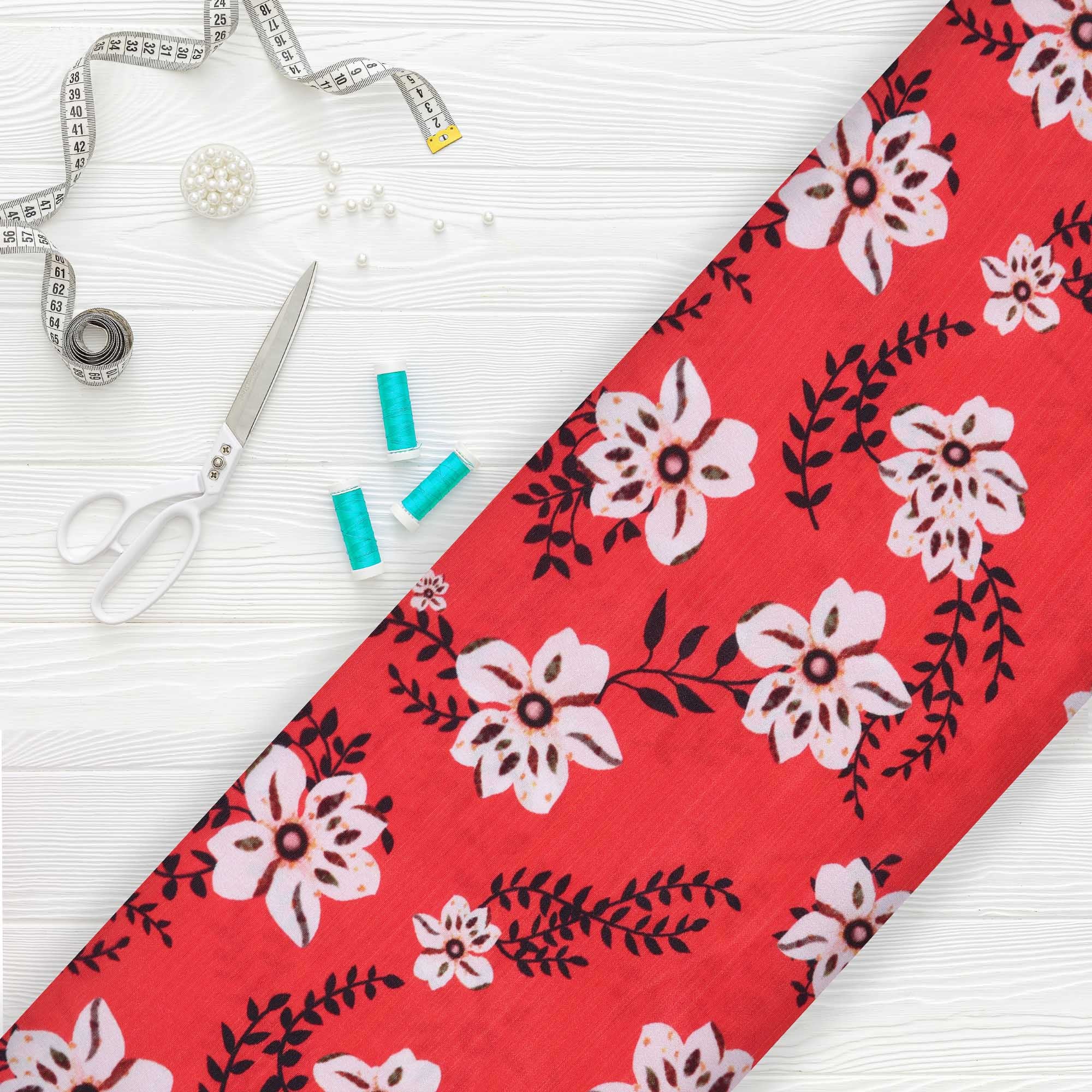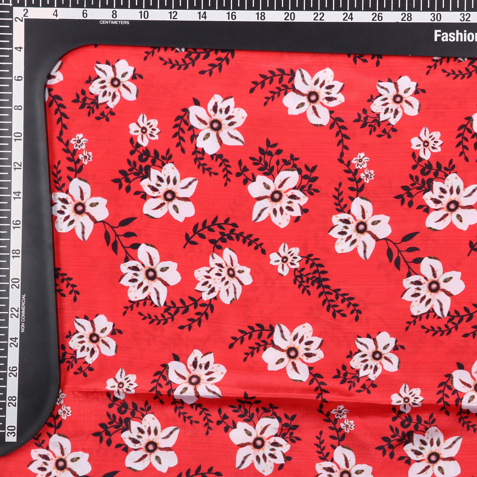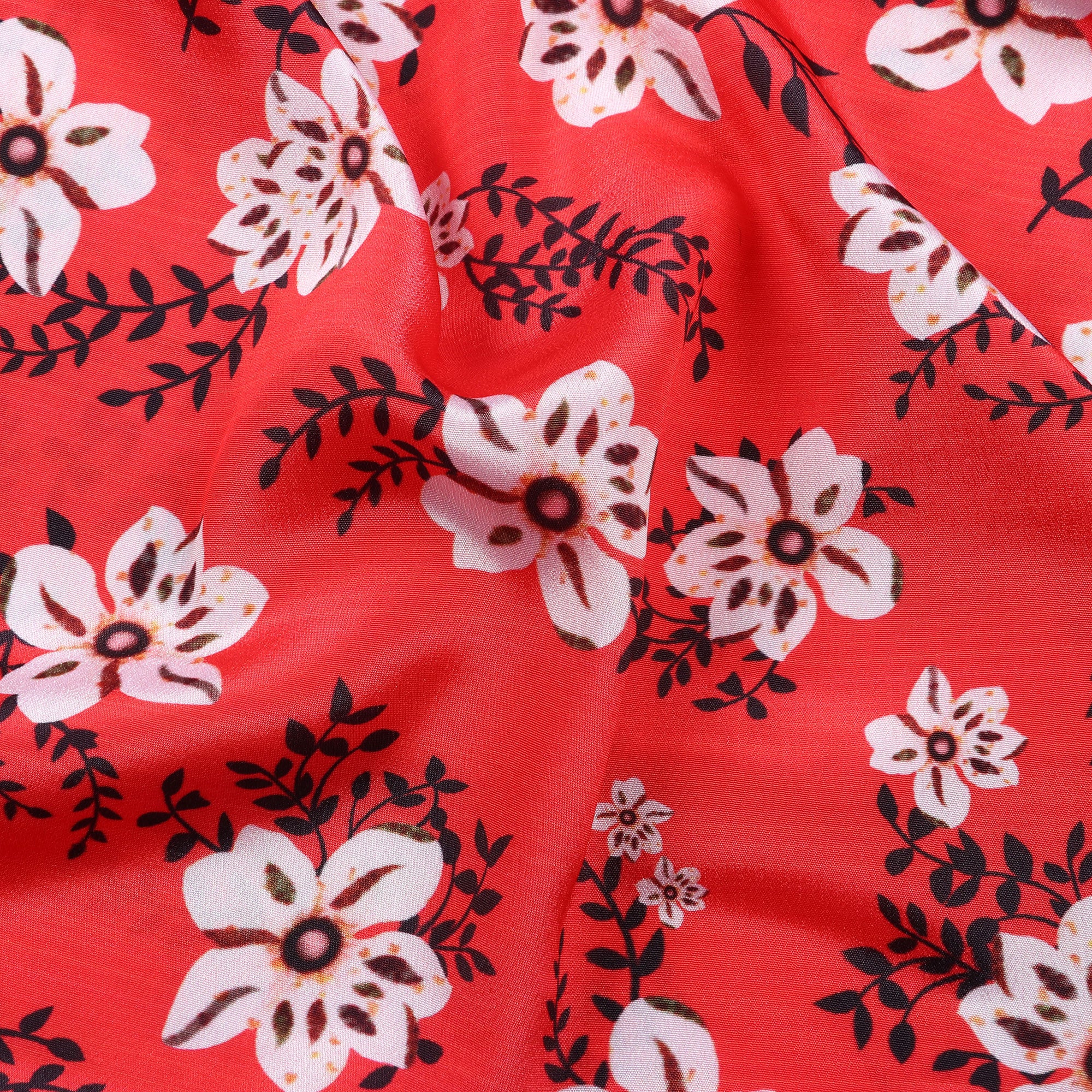 Red And White Floral Pattern Digital Print Silk Crepe Fabric