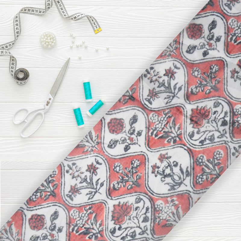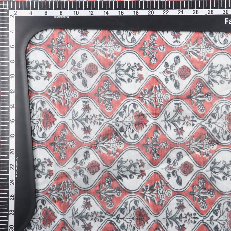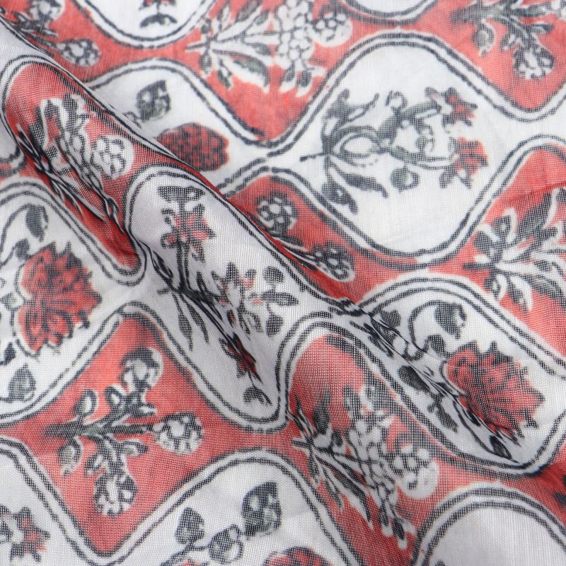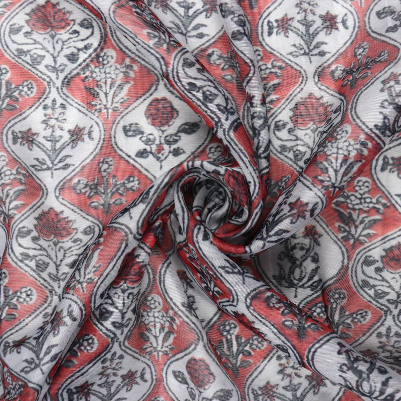 Red And White Trellis Pattern Digital Print Chanderi Fabric