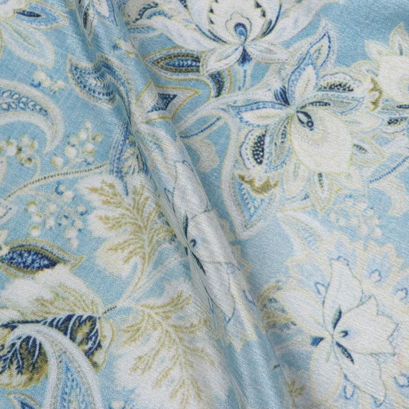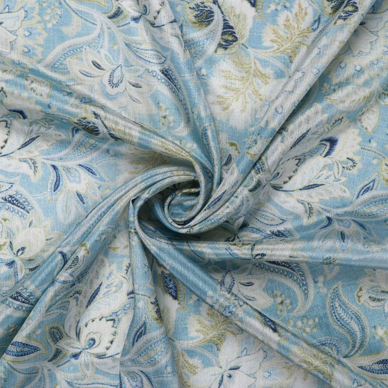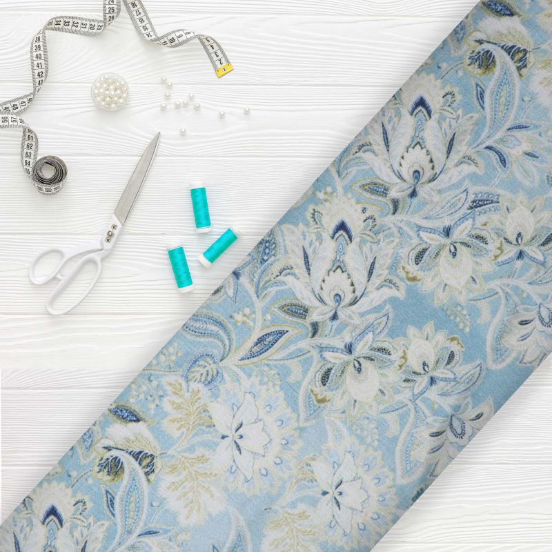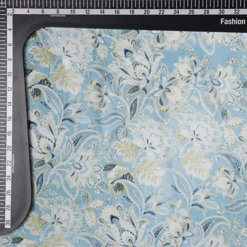 Sky Blue And White Floral Pattern Digital Print Chinon Chiffon Fabric