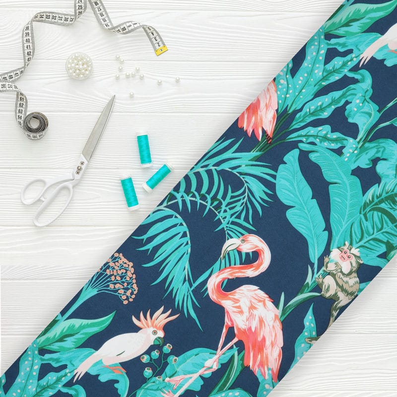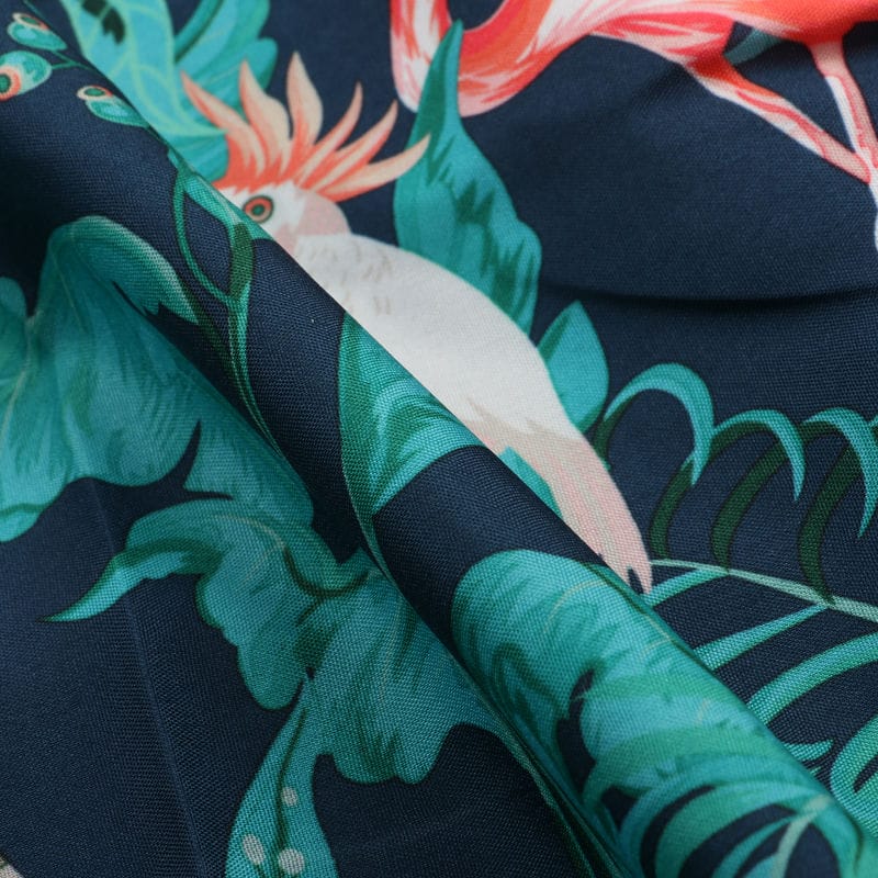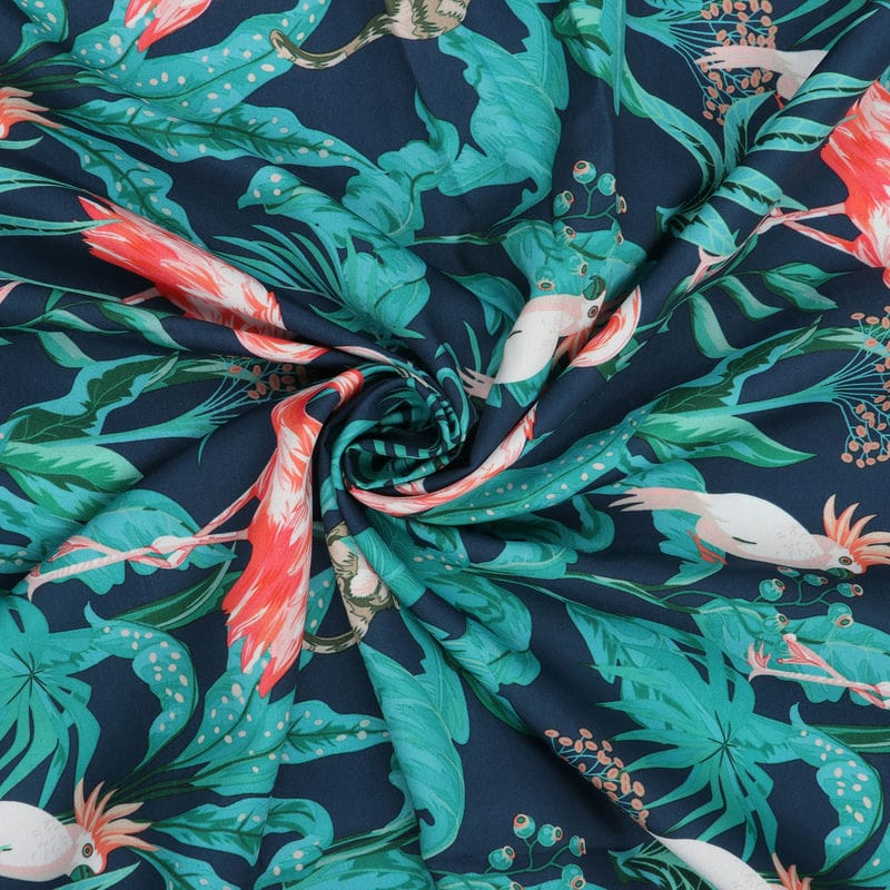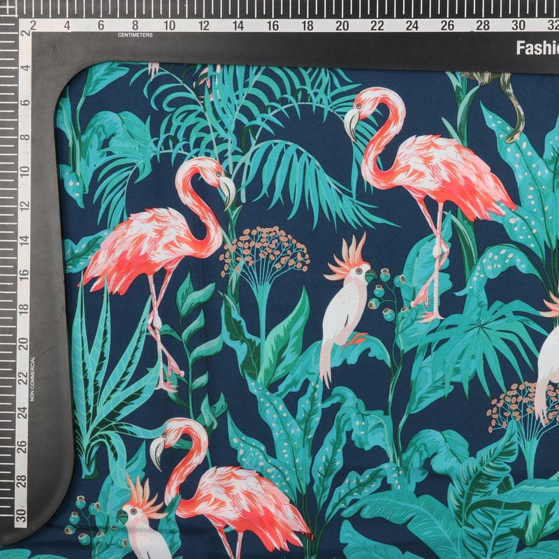 Spruce Blue And Green Birds Pattern Digital Print Crepe Fabric