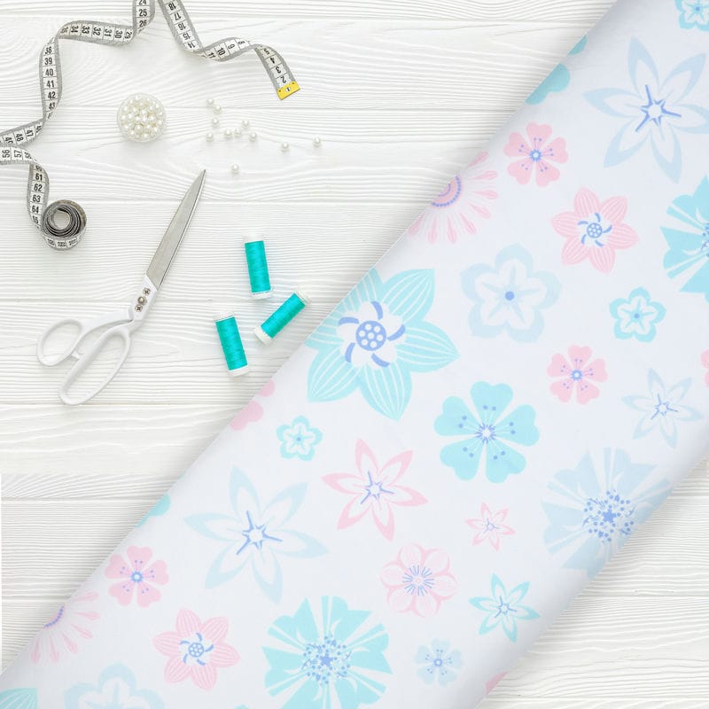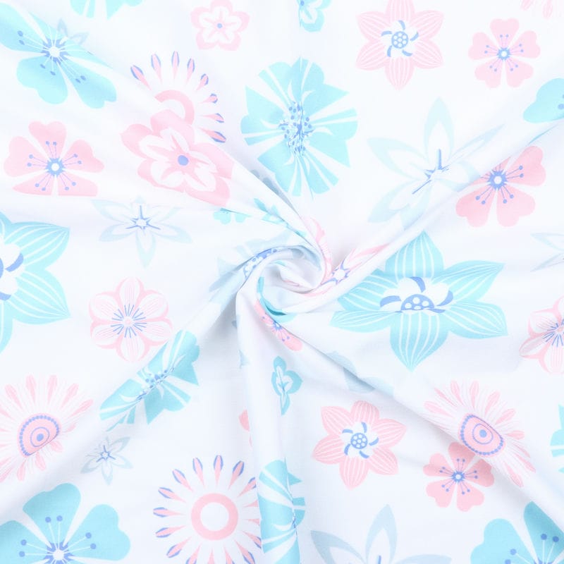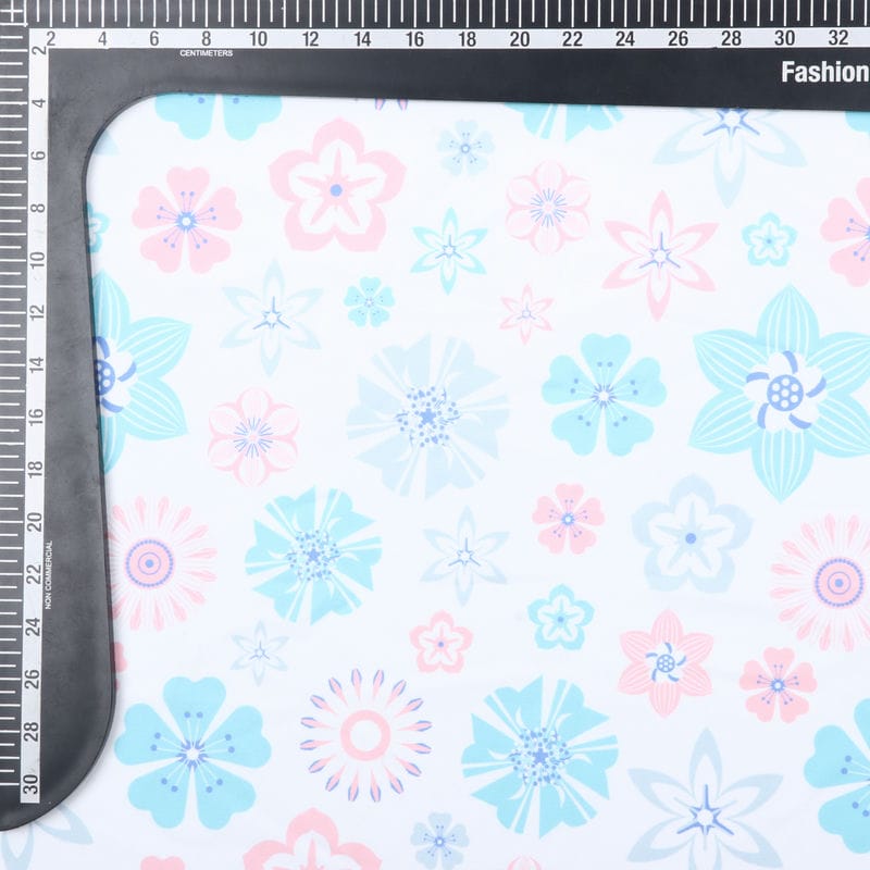 Turquoise And Pink Floral Pattern Digital Print Crepe Fabric