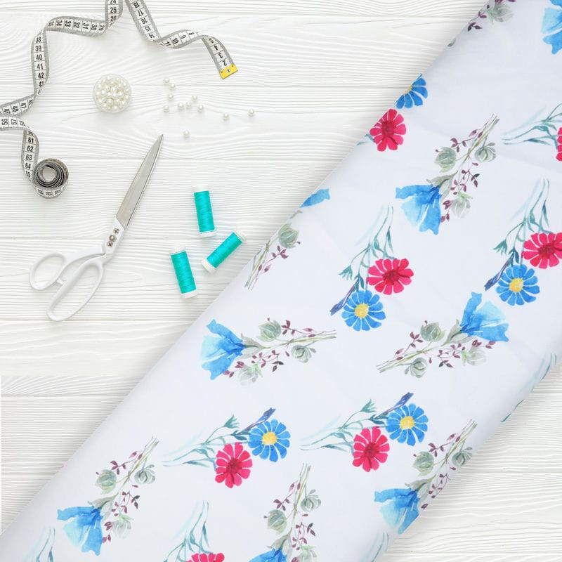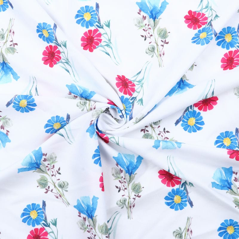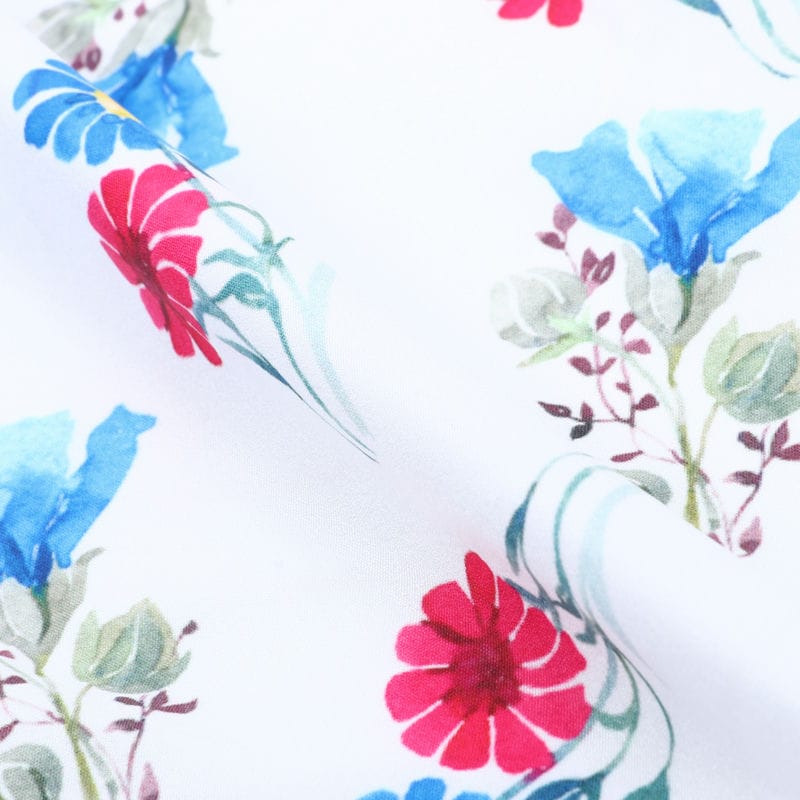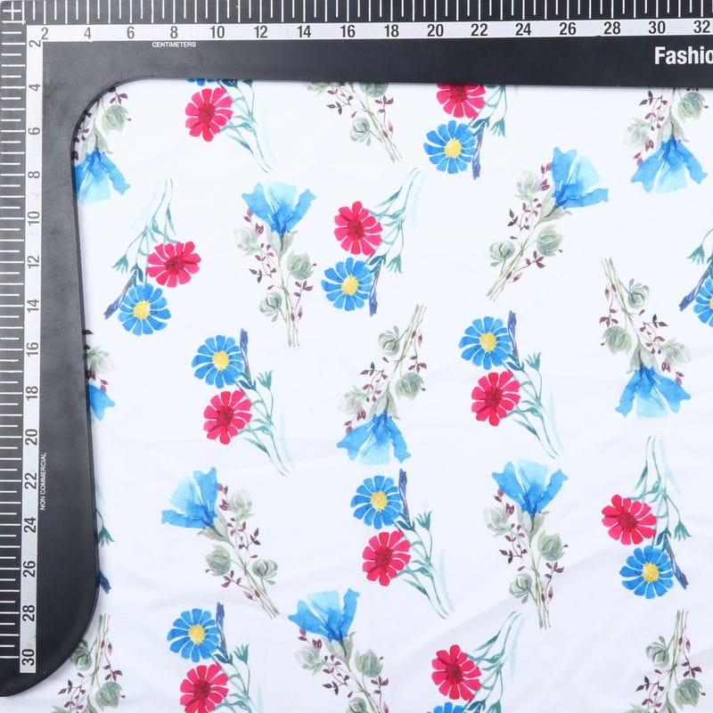 White And Blue Floral Pattern Digital Print Crepe Fabric