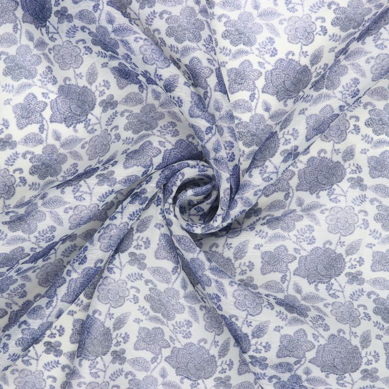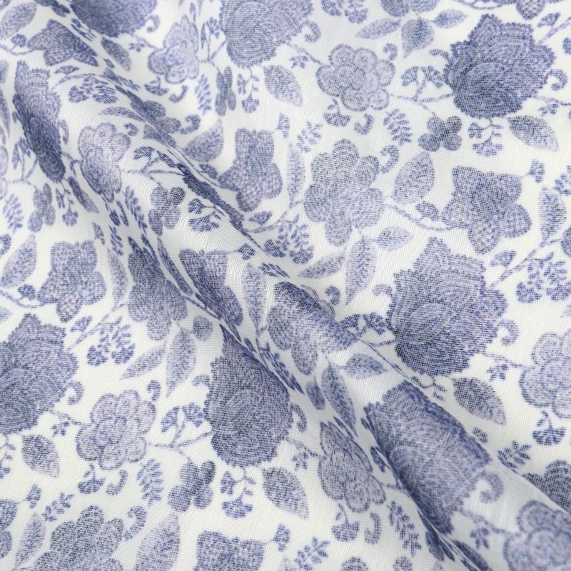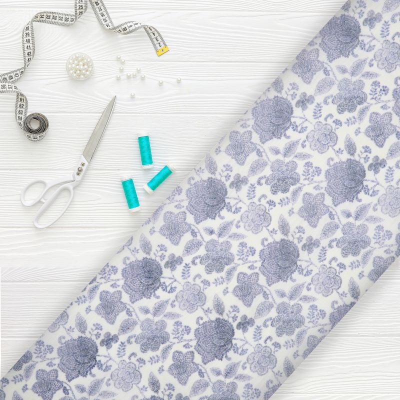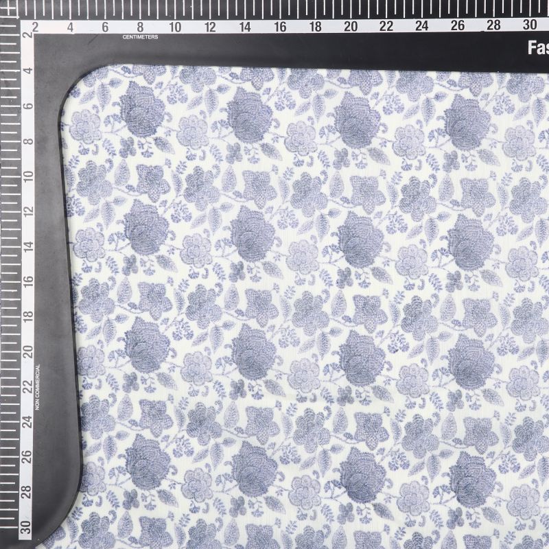 White And Dusty Lavender Floral Pattern Digital Print Chanderi Fabric
