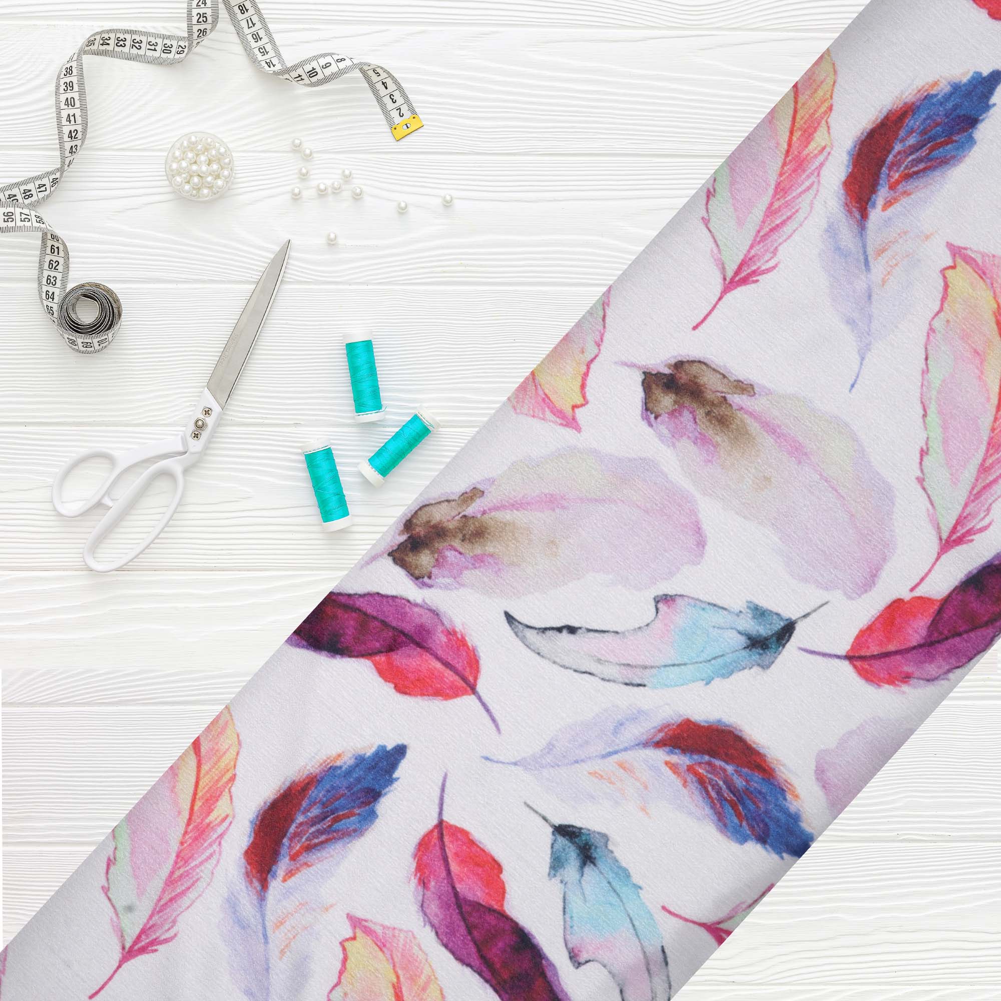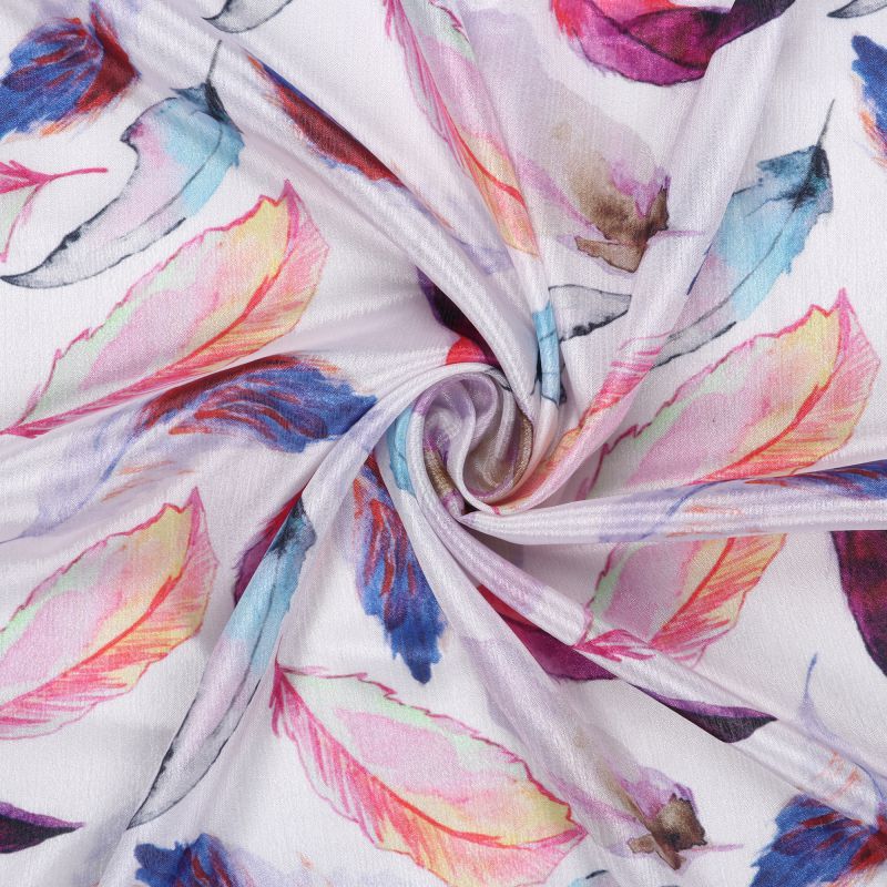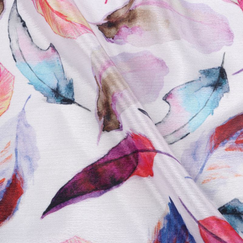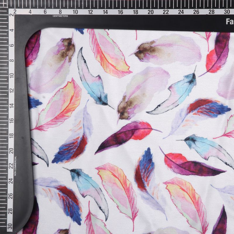 White And Hot Red Feather Pattern Digital Print Chinon Chiffon Fabric