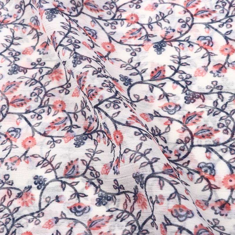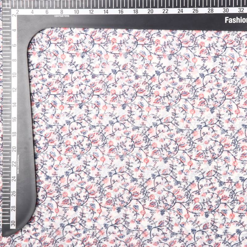 White And Light Orange Floral Pattern Screen Print Chiffon Fabric