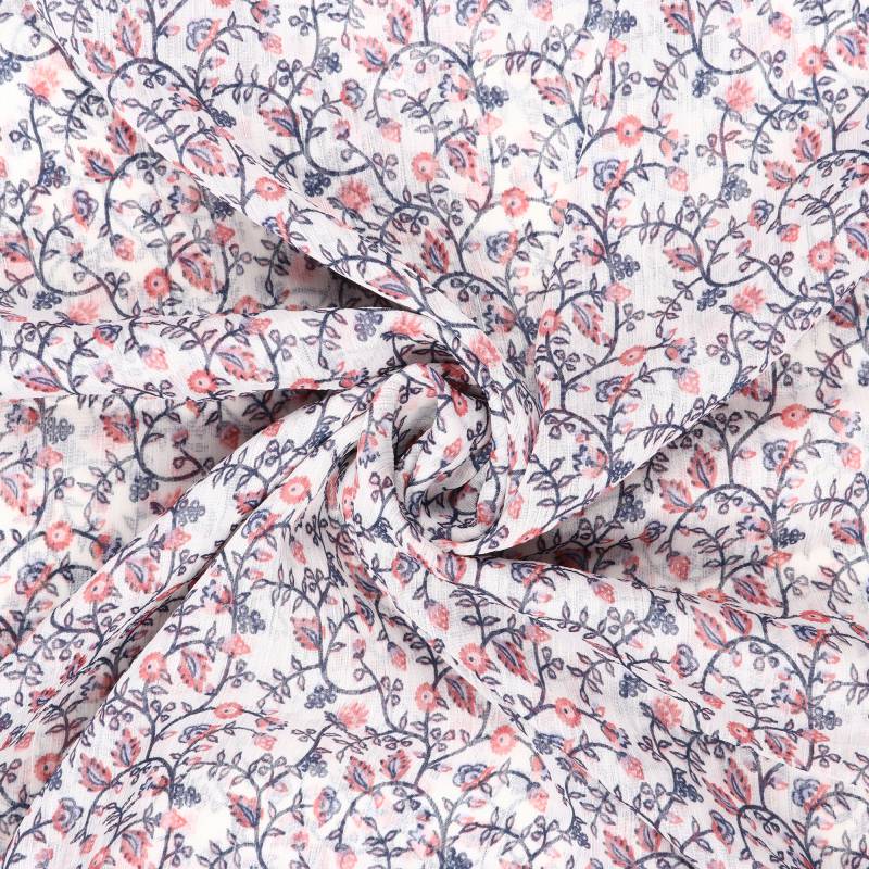 Chiffon from Fabmyntra is a spandex stretch yarn merged fabric culminating in the fanatical stretch with a bit of coarse feel. Procurable in a capacious range of shades and patterns, it is of utmost strong due to twists of yarns and tight weave. Its translucent, airy and lightweight properties make it a crowd favorite and are used enormously for styling and designing dresses, scarves, shirts, blouses, or decorative finishings.