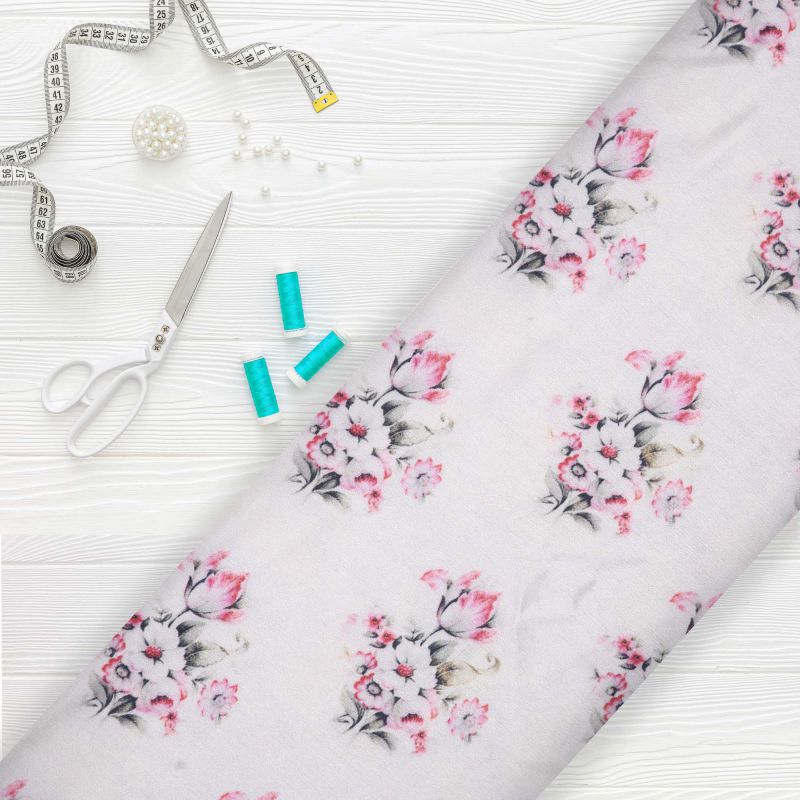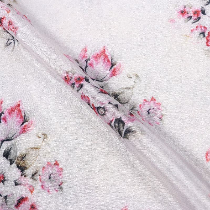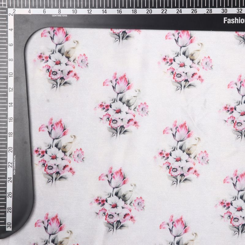White And Pink Floral Pattern Digital Print Chinon Chiffon Fabric