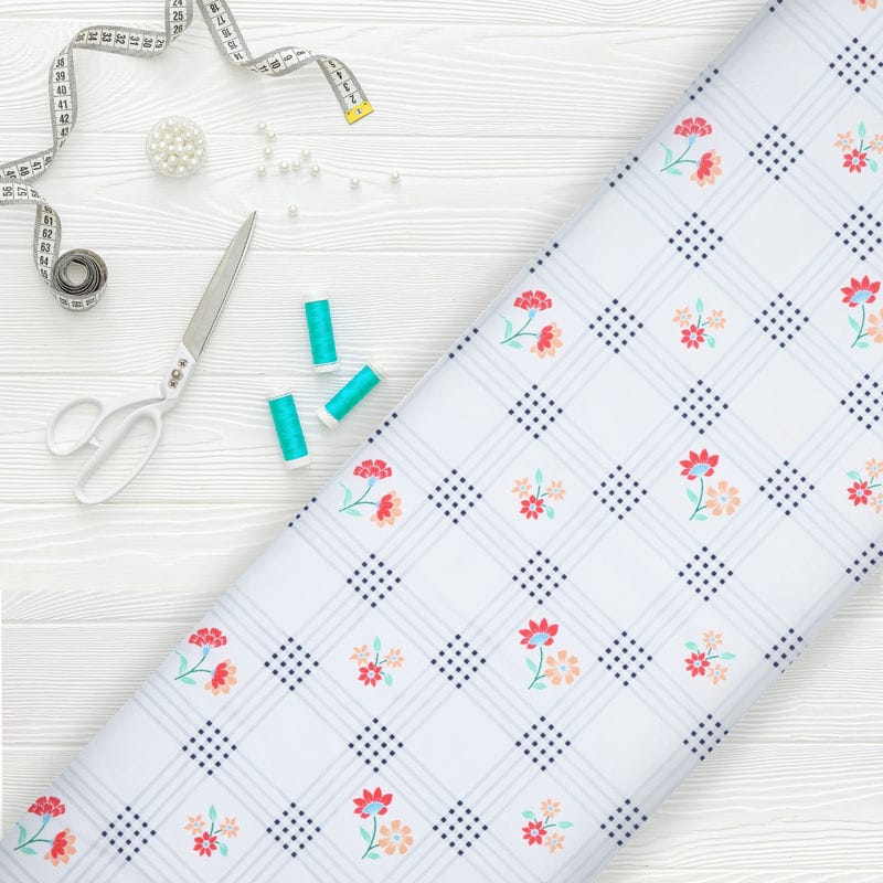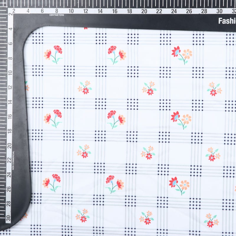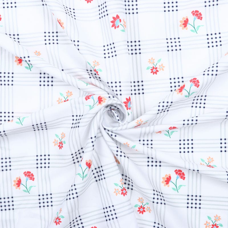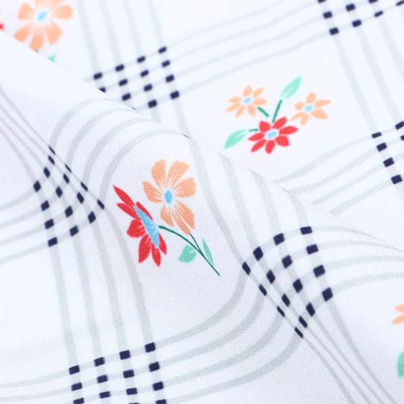 White And Red Floral Pattern Digital Print Crepe Fabric