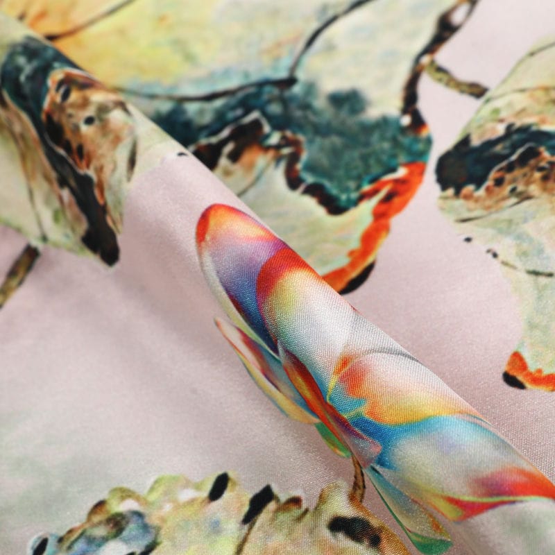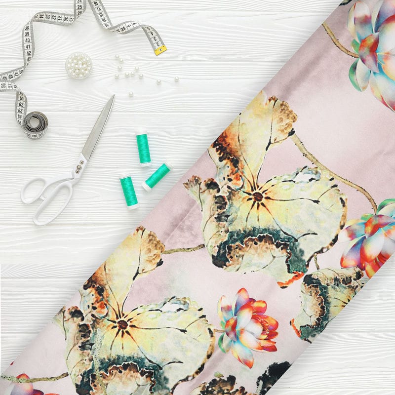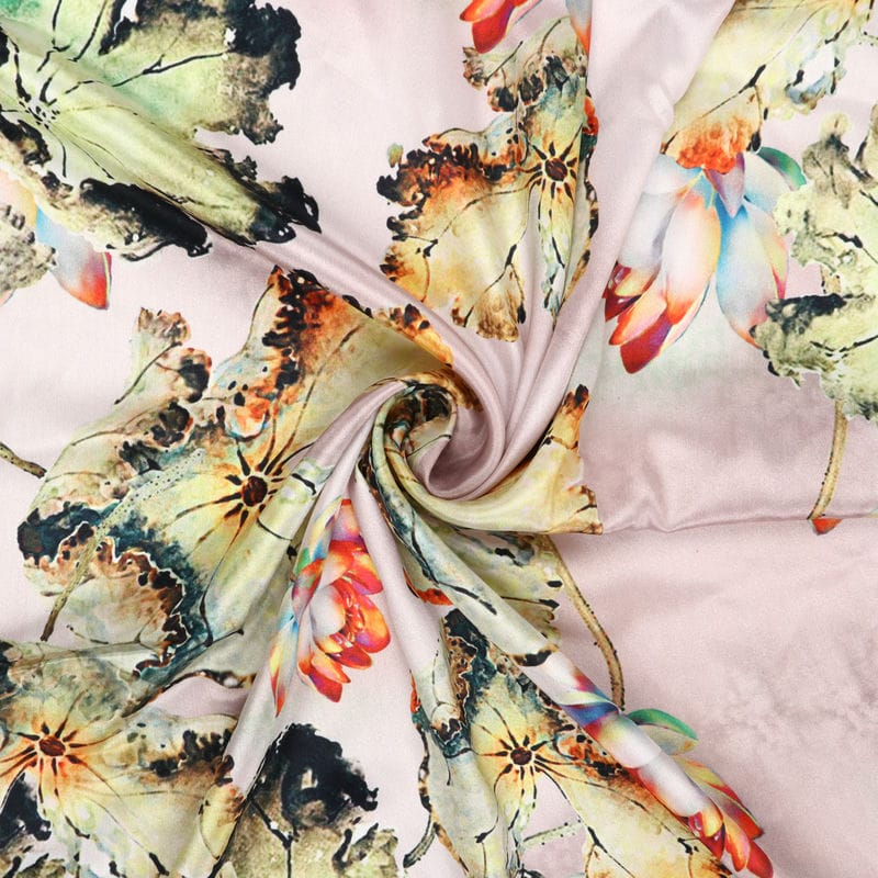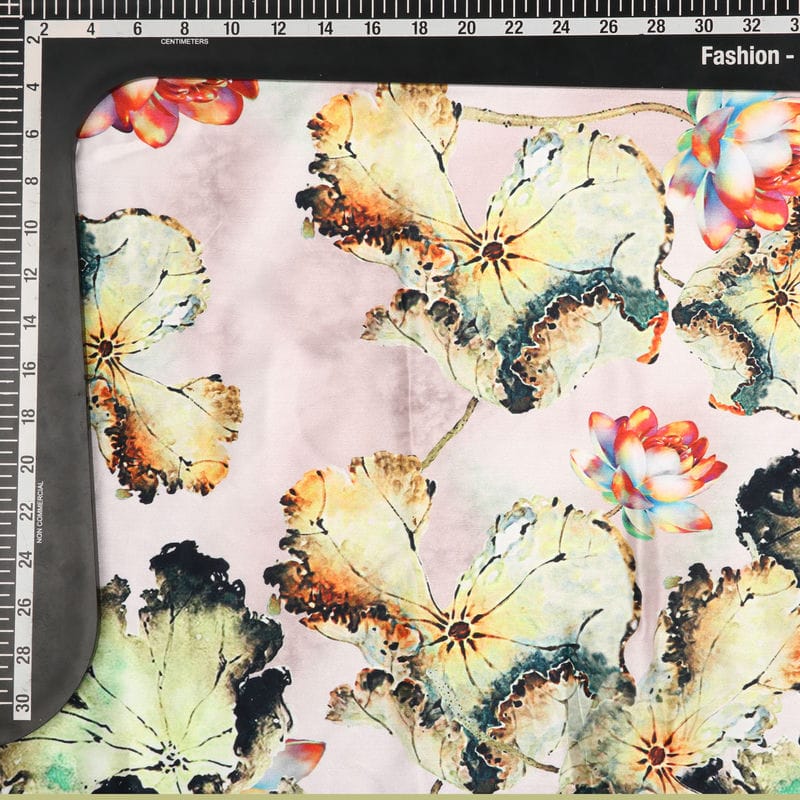 Yellow And Red Floral Pattern Digital Print Silk Crepe Fabric