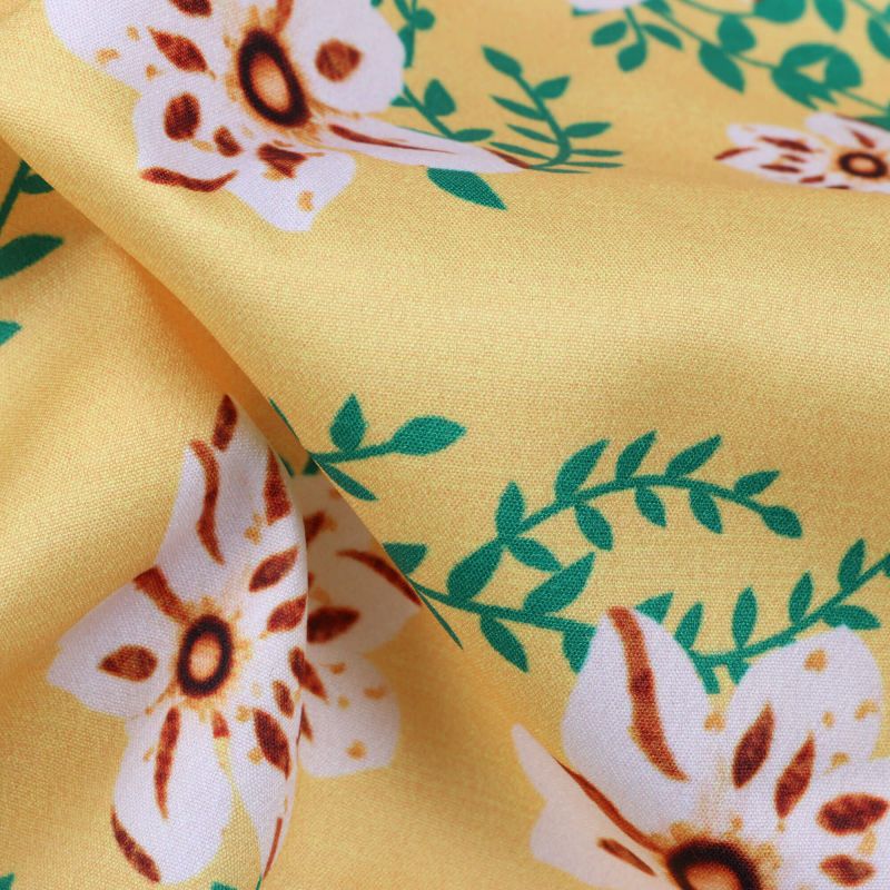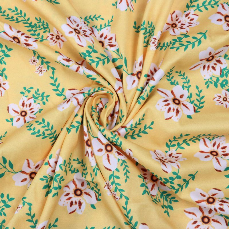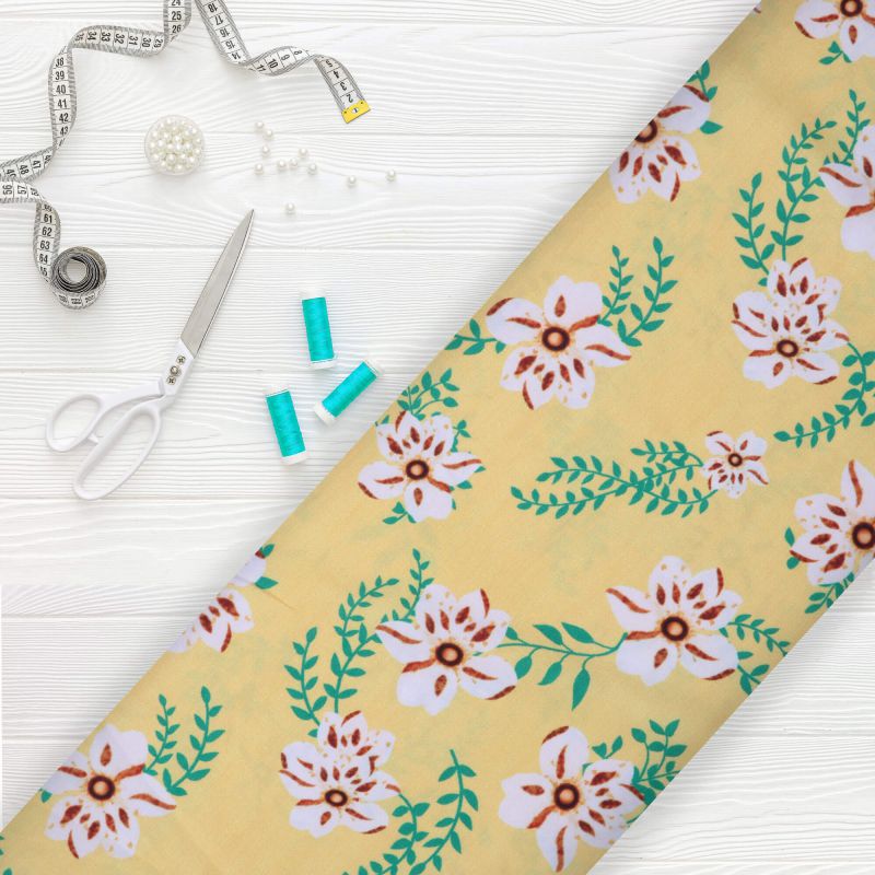 Yellow And White Floral Pattern Digital Print American Crepe Fabric
